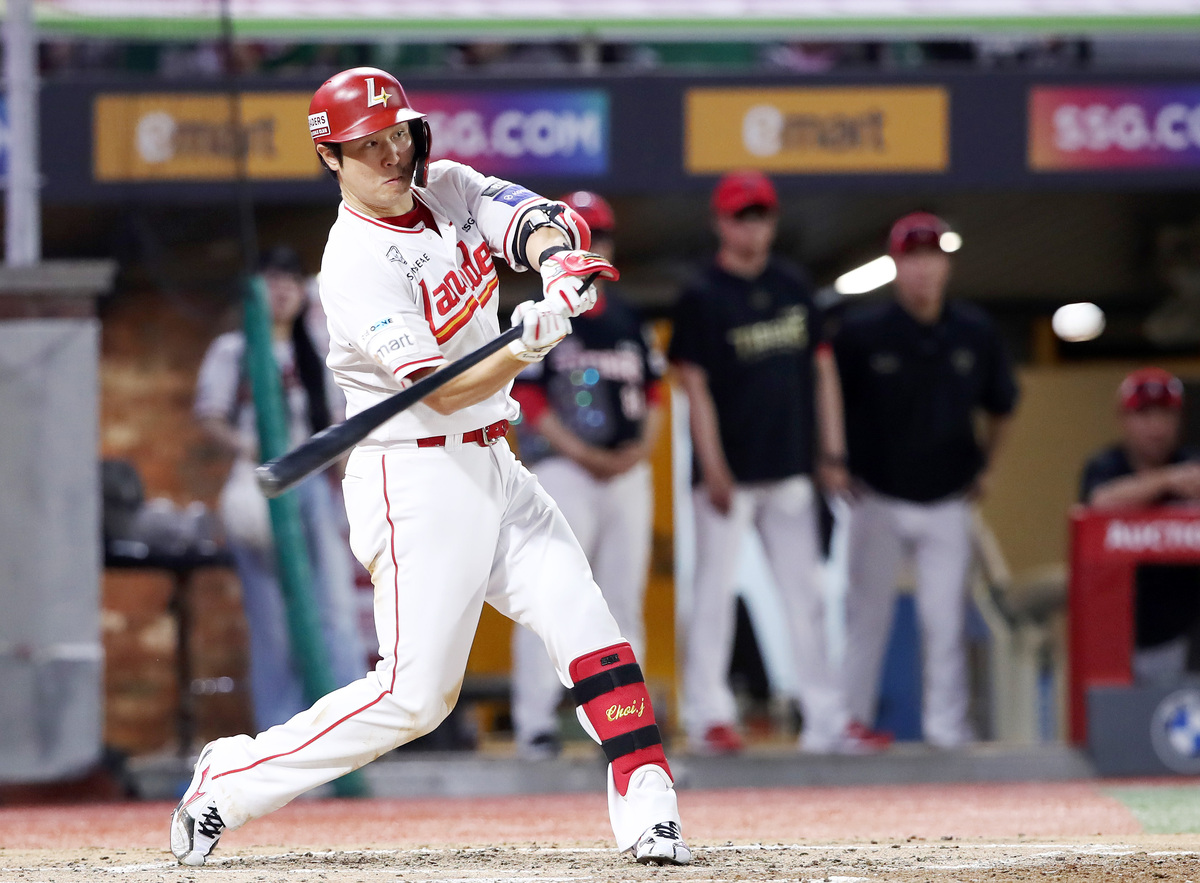 프로야구 SSG 랜더스 최정이 지난달 28일 인천 SSG랜더스필등에서 열린 2025 신한 쏠뱅크 KBO리그 KIA 타이거즈와의 경기에서 공을 타격하고 있다. 사진=SSG 랜더스 제공 한편 이날 SSG는 롯데를 7-5로 꺾고, 64승 58패 4무로 리그 3위를 지켰다. ‘홈런 공장장’ 최정의 활약이 빛났다. 최정은 5회초 시즌 19홈런을 쏘아 올렸다. KBO리그 최초의 10시즌 연속 20홈런이 눈앞이다. 대구 삼성라이온즈파크에서는 구자욱(삼성)이 뜨거운 방망이를 자랑했다. 구자욱은 키움을 상대로 홈런 두 방을 때리며 8-3의 승리를 이끌었다. 삼성은 시즌 64승(61패 2무)째를 수확해 리그 4위 자리를 지켰다. 창원NC파크에서는 연장 접전 끝에 두산이 9-3으로 NC를 꺾었다.
