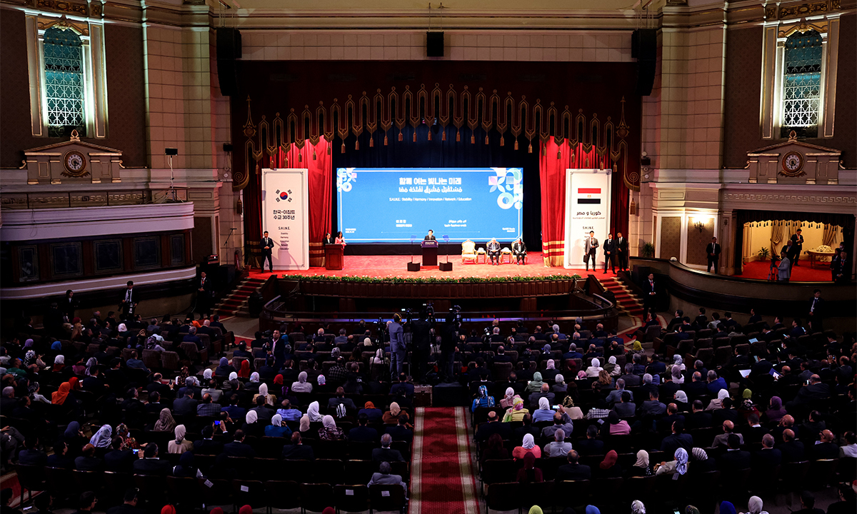 이집트를 공식 방문 중인 이재명 대통령이 20일(현지 시간) 카이로대학교에서 '함께 여는 빛나는 미래'라는 주제로 연설하고 있다. 뉴시스 이 대통령은 이날 이집트 국영신문인 알 아흐람에 기고한 글에서도 한반도 비핵화 평화 구상을 밝히며 이에 대한 이집트 정부의 지지를 당부했다. 이 대통령은 “한국과 이집트가 만들어 나갈 모든 미래의 기본적 토대는 평화”라며 북핵 고도화와 남북 단절을 방치해선 안 된다는 뜻을 분명히 밝혔다. 이 대통령은 기고문에서 “저는 남북 대화가 단절되고 북핵 능력이 고도화하고 있는 현 상황을 방치해선 안 되며 한반도 평화 공존과 공동성장의 새 시대를 열어야 한다는 굳은 믿음을 갖고 있다”며 “이를 위해 가능한 분야에서부터 남북 간 교류를 단계적으로 확대하고 국제사회(와 북한)의 관계 정상화 노력도 적극 지원할 것”이라고 강조했다. 이 대통령은 이날 카이로 대학교에서 진행한 연설에서 이재명정부의 대(對) 중동정책으로 안정·조화·혁신·네트워크·교육의 영어 단어 앞글자를 딴 ‘SHINE 이니셔티브’를 제안했다. 카이로=박지원 기자 g1@segye.com