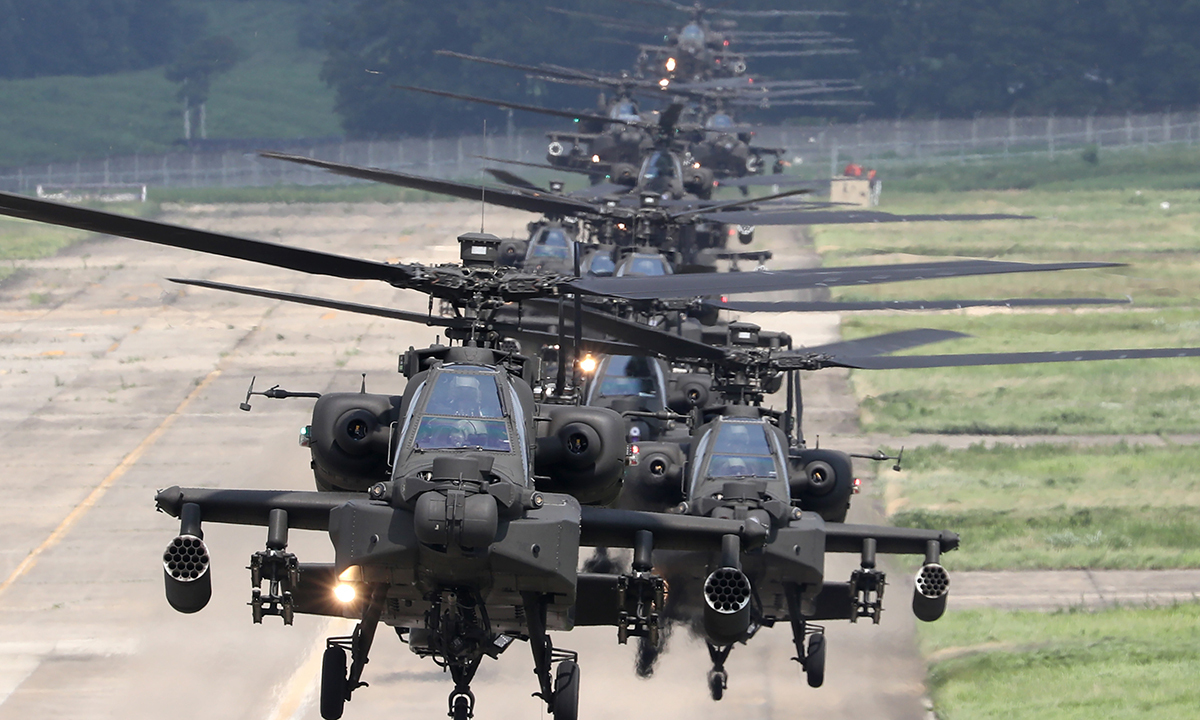 육군 아파치 공격헬기들이 이륙을 준비하고 있다. 세계일보 자료사진 전력화가 완료된 국산 수리온 기동헬기는 2035년을 전후로 성능개량 작업이 이뤄질 가능성이 있다. 엔진 출력을 증대하는 등의 작업이 예상된다. 이외에도 올해 전국 곳곳에서 발생한 대형 산불과 관련, 군 차원의 진화 능력 강화를 위해 UH-60P 기동헬기에 화재진화장비를 구매·장착했다.