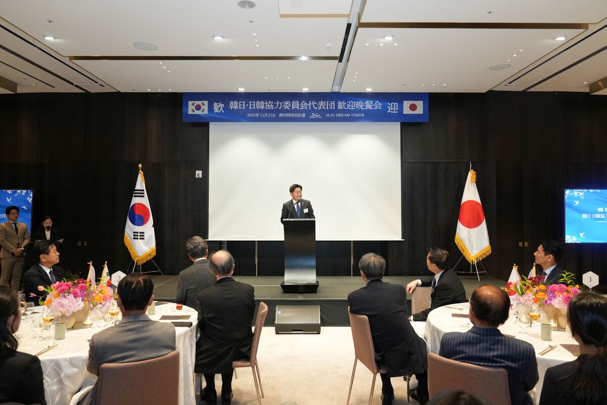 21일 제주드림타워에서 열린 제58회 한일·일한협력위원회 합동총회. 제주도 제공 제주도가 주최한 환영만찬에서 오영훈 지사는 “제주의 마음이 여러분 모두에게 닿기를 바란다”며 간단한 일본어로 환영 인사를 전했다.