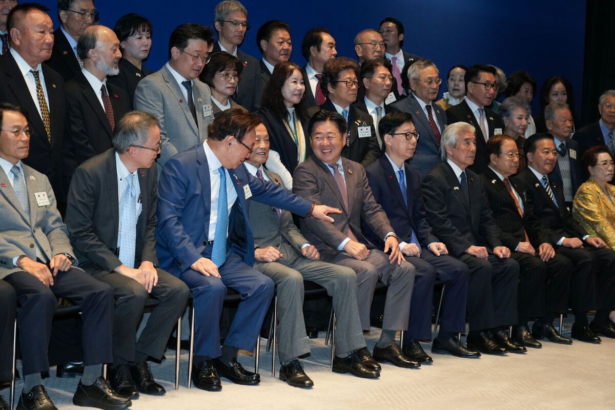 21일 제주드림타워에서 열린 제58회 한일·일한협력위원회 합동총회에서 참석자들이 기념 촬영하고 있다. 제주도 제공 서울과 도쿄에서 번갈아 열리던 합동총회가 국내에서는 처음으로 제주에서 개최되면서, 제주가 한일 교류·협력의 거점으로 주목받게 됐다.