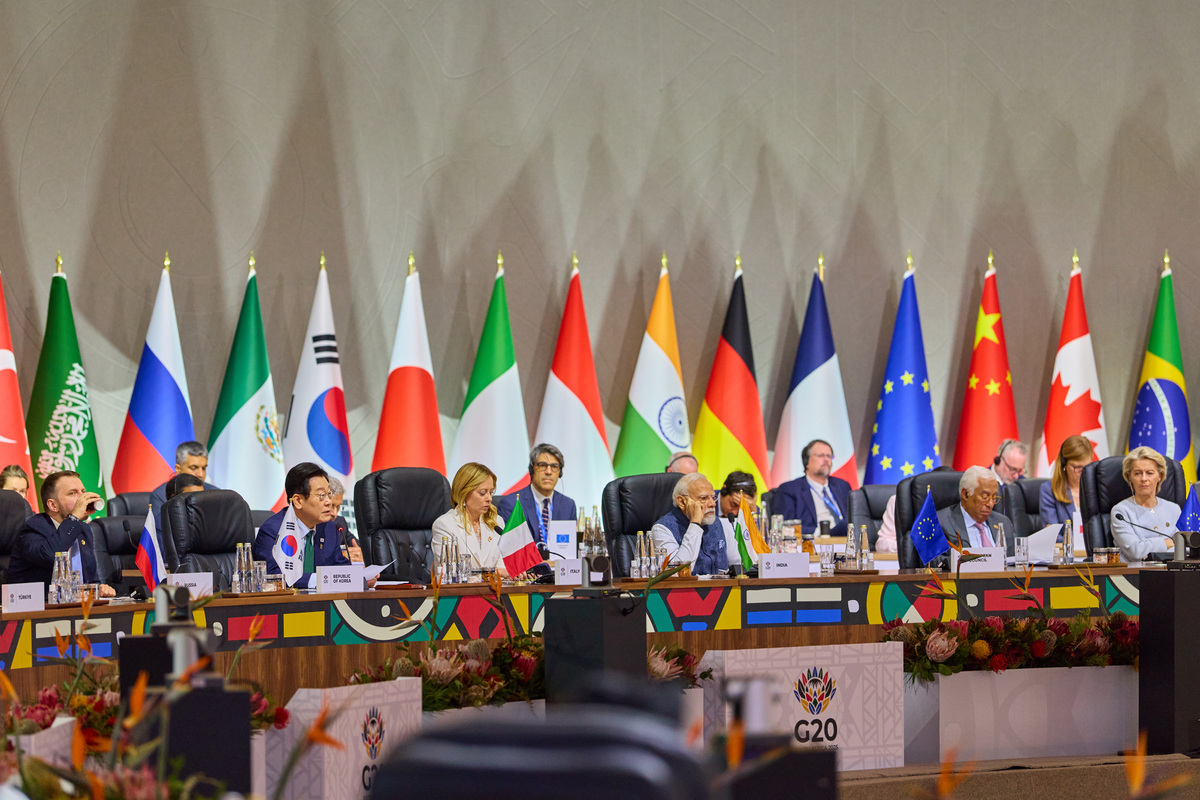 이재명 대통령이 23일(현지 시간) 남아프리카공화국 요하네스버그 엑스포 센터에서 열린 G20 정상회의 제3세션에서 발언하고 있다. 요하네스버그=뉴시스 이 대통령은 “특히 미국 입장에서는 중국을 적절하게 견제하고 싶어한다”면서 “또 한편으로는 견제하면서도 또 한편으로는 협력할 분야를 찾아서 적극적으로 협력을 하고 있는 게 또 현실”이라고 말했다. 이어 “국가와 국가 간의 관계를 일도양단식으로 ‘올 오어 낫싱’(All or Nothing)’, 전부 아니면 전무 이런 식으로 접근하면 결국은 남는 것이 하나도 없다”고 강조했다. 이 대통령은 전날 G20 정상회의를 계기로 다카이치 사나에 일본 총리 및 리창 중국 국무원 총리와 각각 회동했다. 다카이치 총리의 ‘대만 유사시 개입’ 시사 발언 등으로 중·일 갈등이 최고조로 치닫는 가운데, 중국과 일본 사이에서 이재명정부의 실용외교 전략이 시험대에 올랐다는 평가도 나온다.