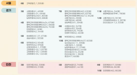 올해 남은 기간에도 이번 달 남양주왕숙(881가구), 군포대야미(1003가구)를 포함해 총 5100가구가 수도권에서 추가로 분양된다. 입주자 모집 공고 등 자세한 사항은 4개 공공기관별 누리집에서 확인할 수 있다.