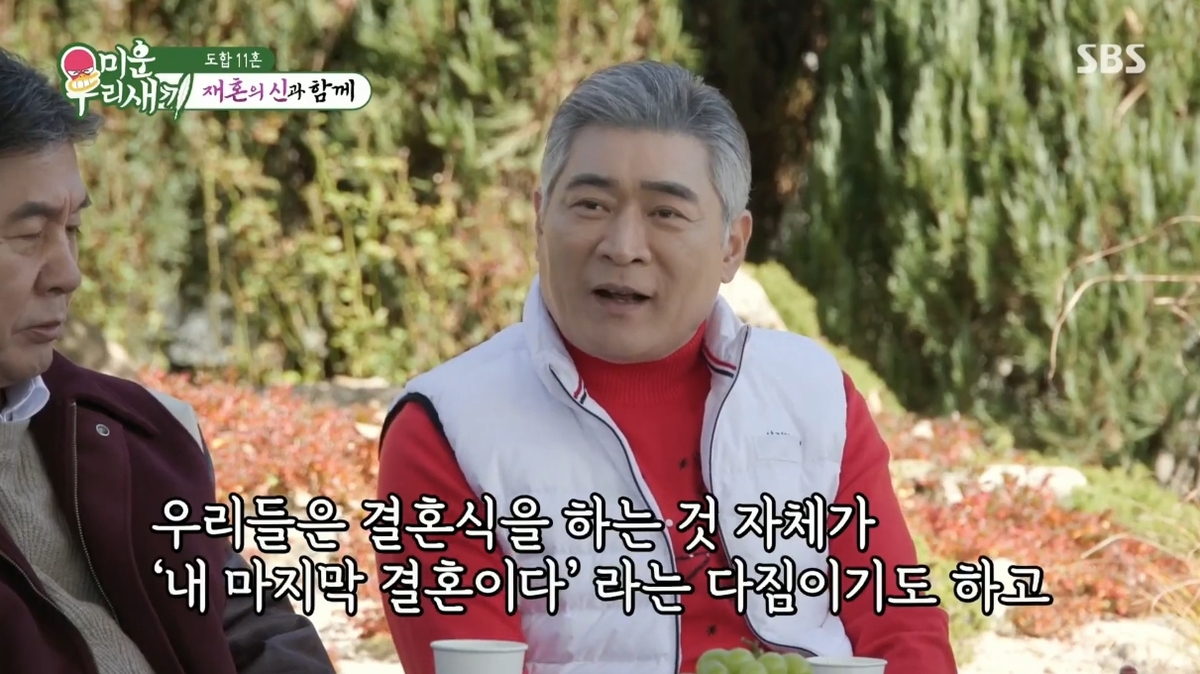 박영규(왼쪽), 편승엽. SBS ‘미운 우리 새끼’ 방송 화면 캡처 편승엽은 과거 3번 모두 성대한 결혼식을 했던 이유에 대해 “나와 결혼한 사람들이 거의 초혼이었다. 애도 딸린 남자와 결혼함에 있어서, 남들 앞에서 자신감 있게 해주고 싶은 마음도 있고 많은 분들의 축복을 받고 화려하게 했다”고 회상했다. 그러나 네 번째 아내와는 결혼식을 올리지 않았다고 밝혔다. 그는 “3번 다 나한테서 도망가지 않았냐. 또 도망갈까 봐”라고 솔직히 말했다. 이어 “(지금 아내도) 결혼식을 하고 싶어 한다. 예전에는 또 그런 일을 겪을까 봐 두려움이 있었다”면서도 “이제는 해도 될 것 같다. 결혼식을 하는 것 자체가 ‘내 마지막 결혼이다’라는 다짐이기도 하고, 단단해지고 싶은 마음이 든다”고 전해 눈길을 끌었다.