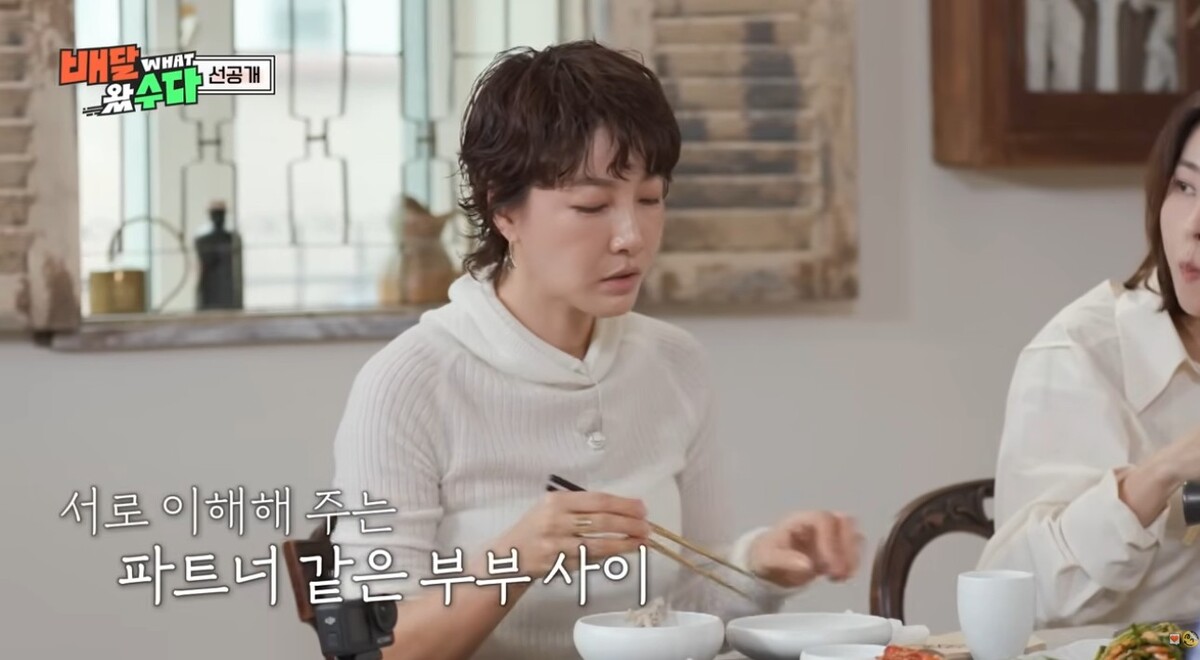 진서연은 남편에 대해 '서로 이해해 주는 파트너같은 부부 사이'라고 밝혔다. 유튜브 채널 'KBS Entertain' 영상 캡처 마초적인 남자를 싫어했던 진서연은 현재 남편을 두고 “잘 만났다”라면서 “결이 좀 같은 사람들은 자기 영역을 침범하지 않는 것 같다”라고 말했다. 그러면서 ‘서로 이해해 주는 파트너 같은 부부 사이’라고 덧붙였다.