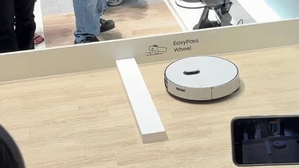한층 똑똑해진 AI 기술도 볼거리였다. 무색의 투명한 액체도 탐지하고 사용자의 설정에 따라 액체를 닦거나 피해 갈 수 있었다. 사물 인식 센서와 적외선(IR) LED가 함께 작동한 결과다. 또 사람이나 반려동물은 물론, 1㎝ 이하의 폰 케이블과 러그 등 작은 사물들도 자연스럽게 인식했다.
