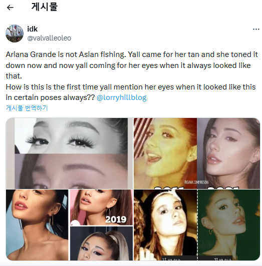 아리아나 그란데는 지난 해부터 전과 다르게 밝아진 피부 색과 화장법, 마른 몸매로 '아시안 피싱'을 한다는 대중과 언론의 많은 질타를 받아왔다. 이에 팬들은 '아시안 피싱'이 아닌 자연스러운 컨셉의 변화라는 긍정적 반응과 '동양인인척 하는 서양인'이라는 부정적인 반응을 보이고 있다.
