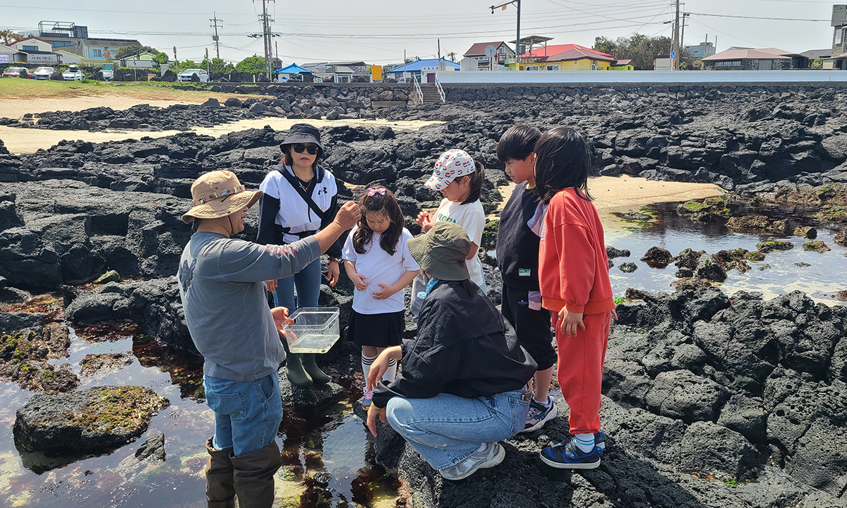 지난 28일 제주시 구좌읍 평대초등학교에서 열린 참관수업. 3학년 오세은양은 까무잡잡하게 그을린 얼굴로 ‘평대생태탐험대’ 발표회에 온 부모님 앞에서 한 학기 동안 진행한 생태체험 결과를 발표했다. 교실 모니터에선 학생들이 평대 해변 연안습지 생물을 직접 관찰한 모습이 재생됐다. 영상 속 학생들은 말미잘, 무늬발게, 돌팍망둑, 달랑게 등을 직접 보며 연신 감탄했다.