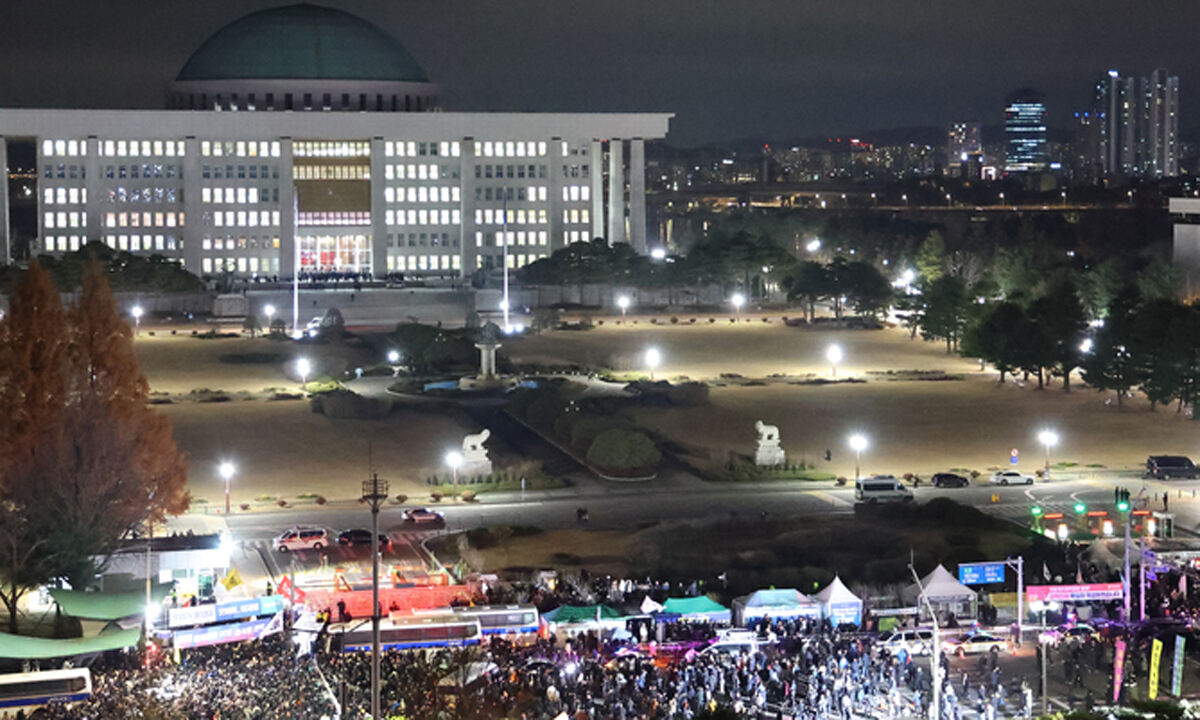 오후 11시쯤, 국회 정문 쪽에 가까워질수록 사람들이 많아졌다. 경찰은 이미 국회 출입을 통제하고 있었다. 혼란 속에서도 사람들은 각자 방식으로 목소리를 냈다. 춤을 추는 사람도 있었고 마이크를 든 사람도 있었다. 이씨 또래도 많았다. 같은 대학 학우들이 와서 인사를 건넸는데 그새 단톡방이 만들어진 모양이었다. 이씨는 구호를 외치거나 적극적으로 나서지는 못했다. 현장 분위기가 너무 비현실적이었고, 어떤 구호를 외쳐야 할지도 몰랐다.