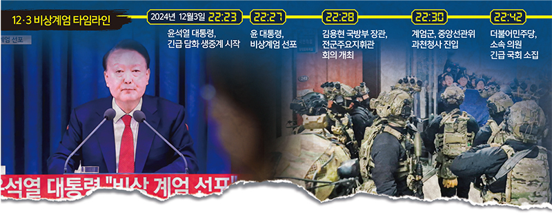12·3 비상계엄 당시 국회에 계엄군으로 투입됐던 육군 특수전사령부 707특수임무단원이 자괴감을 감추지 못하고 있다. 뉴스1 ◆‘K민주주의’ 저력…여론 분열은 숙제 비상계엄 선포 직후, 정치권의 시계는 어느 때보다 빠르게 돌아갔다. 시민들이 맨몸으로 무장군대에 맞서는 사이 야당 국회의원들과 일부 여당 의원들이 국회 담장을 넘었다. 계엄 선포 150분 만에 계엄 해제 요구안이 국회 문턱을 넘었다. 이후 12월7일 첫 번째 탄핵안 표결은 국민의힘 불참으로 무산됐지만, 일주일 뒤인 14일 민주주의를 향한 민심의 물결은 윤 전 대통령을 탄핵 심판대로 보냈다.