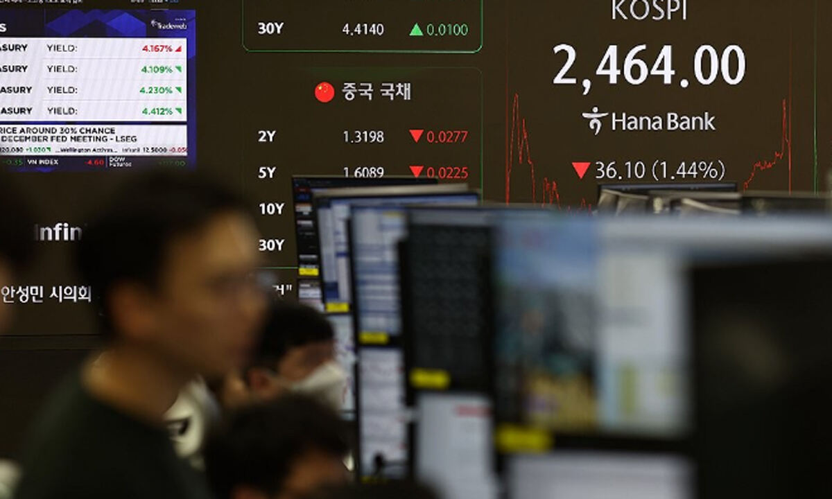 코스피가 36.10p(1.44%) 내린 2464원에 장을 종료한 2024년 12월 4일 오후 서울 하나은행 본점 딜링룸에서 딜러들이 업무를 보고 있다. 연합뉴스 계엄의 충격을 고스란히 받은 원·달러 환율은 4일 비상계엄 선포 소식에 급등해 전날보다 20여원 뛴 1439.0원까지 올랐다. 비상계엄 사태 당일 2500.10으로 장을 마감했던 코스피는 다음날 2464.00을 기록하며 하락했고, 코스피와 코스닥 시가총액은 계엄 선포 이튿날인 4일부터 9일까지 약 144조원이 증발했다. 그간 ‘코리아디스카운트’(한국 증시 저평가 현상) 해소를 위해 고군분투하던 금융당국의 노력이 무색해졌다. 외국인직접투자(FDI)도 줄곧 곤두박질쳤다. 지난 7월 초 정부가 발표한 올해 상반기 누적 FDI 신고액은 131억달러로, 지난해 상반기(153억4000만달러)보다 14.6% 급감했다. 외교적 손실도 막대했다. 대외 이미지가 심각하게 훼손됐고, 정상외교 공백 장기화로 이를 수습할 엄두도 내지 못했다. 단 6시간의 불법 계엄으로 한국 외교를 70년 전으로 돌려버린 사태 앞에서 ‘세계 10위권의 민주주의 선진국’이란 자부심은 물거품이 됐다.