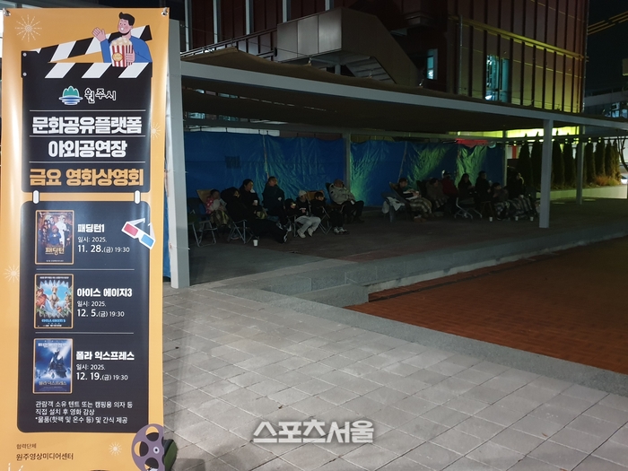 [스포츠서울ㅣ원주=김기원기자]원주시청 문화예술과(과장 박혜순)는 문화공유플랫폼 야외공연장 활성화를 위해 11월 28일(금) 저녁 7시30분부터 금요 영화상영회를 진행했다.