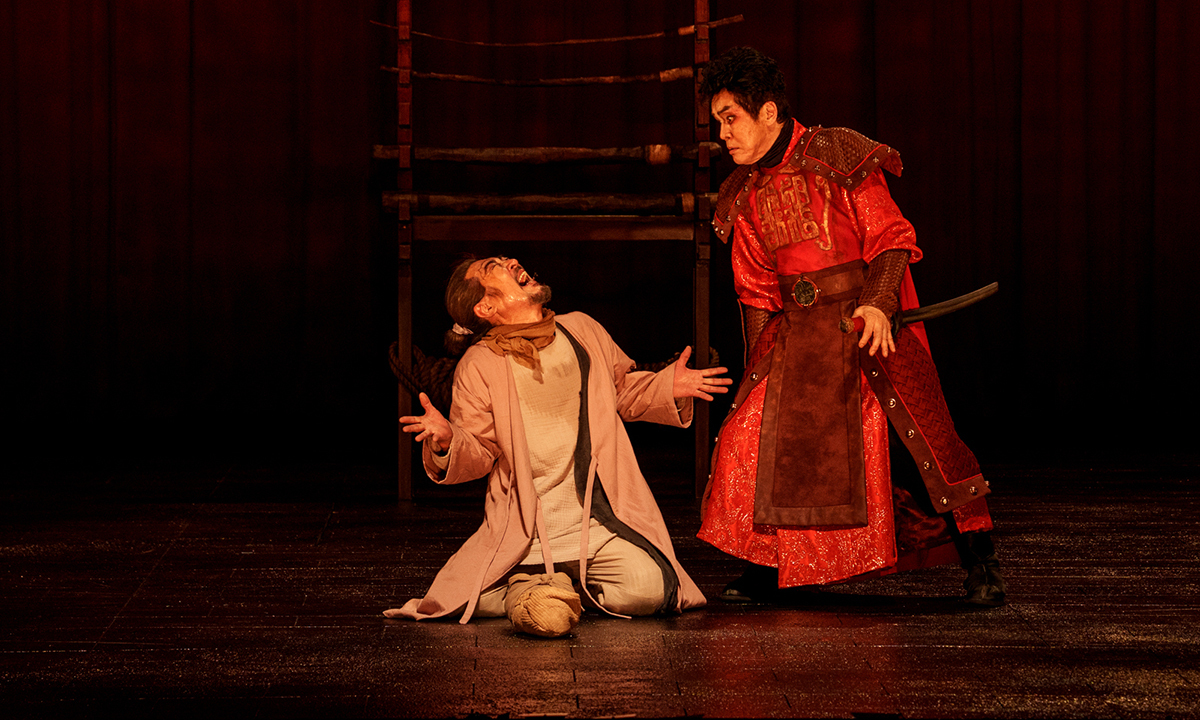 2015년 초연부터 국립극단에서 관객이 보고 싶은 작품 1위를 지켜오고 있는 고선웅 연출의 ‘조씨고아, 복수의 씨앗’의 한 장면. 배우 하성광이 조씨 가문 마지막 핏줄을 살리기 위해 자신의 갓난아기를 희생시키는 시골 의원 정영으로서 명연기를 펼친다. 국립극단 제공 진나라 왕 ‘영공’부터 성문지기까지 배역의 경중없이 모든 출연진이 뚜렷한 존재감있는 연기를 펼쳤다. 원작에 없으나 고선웅이 등장시켜 객석 곳곳에서 눈물이 나오게 만든 정영의 처 이지현 배우, 그리고 젊은이를 위해 여생을 미련없이 버리는 공손저구 정진각 연기가 묵직했다. 무엇보다 도완고 역을 맡은 장두이의 압도적 카리스마가 대극장 무대의 긴장감을 견인했다. 박성준 선임기자 alex@segye.com