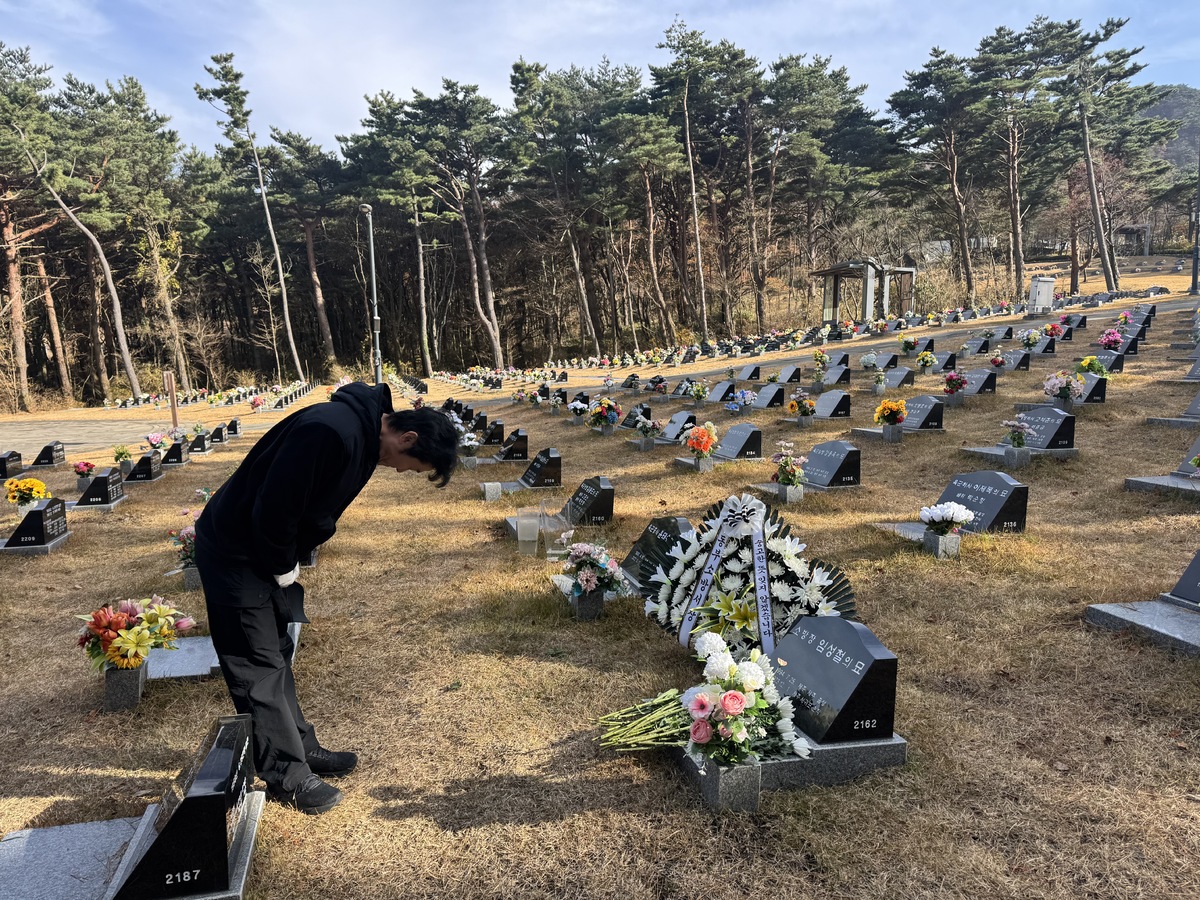이들은 모두 검은색 계열의 옷을 입고 임 소방장이 남긴 헌신과 책임감을 되새기며 모두 완주했다. 국립제주호국원에 도착해 옷을 갈아입은 뒤 임 소방장 묘역 앞에서 헌화와 묵념을 하며 고인의 숭고한 희생을 기렸다. 표선119센터 구급대원이던 임 소방장은 지난 2023년 12월 1일 오전 표선면 창고 화재 현장에서 순직했다. 가장 먼저 현장에 도착했던 그는 창고 옆 주택에 거주하던 80대 노부부를 대피시켰다. 이어 대원들과 화재 진압을 하던 중 창고 외벽 콘크리트 처마 붕괴 사고로 하늘의 별이 됐다.