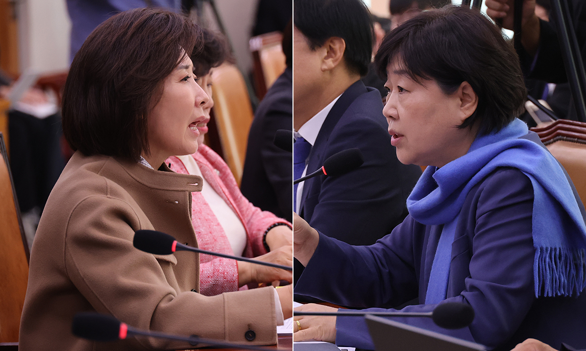 가시돋친 설전 국민의힘 나경원 의원(왼쪽)과 더불어민주당 서영교 의원(오른쪽)이 1일 서울 여의도 국회에서 진행된 법제사법위원회 법안심사제1소위에서 설전을 벌이고 있다. 이날 여야는 ‘내란전담재판부’, ‘법 왜곡죄’ 등 사법개혁안을 두고 “국민적 요구”(민주당), “헌법질서 파괴”(국민의힘)라고 주장하며 팽팽히 맞섰다. 허정호 선임기자 곽규택 의원은 “헌법상 보장된 사법권 독립과 삼권분립 정신을 훼손하는 날”이라며 “국민과 함께 당력을 모아 (법안 처리를) 저지하도록 하겠다”고 했다. 반면 범여권 의원들은 내란 종식을 위한 토대가 마련됐다며 신속하게 사법개혁을 추진하겠다고 강조했다.