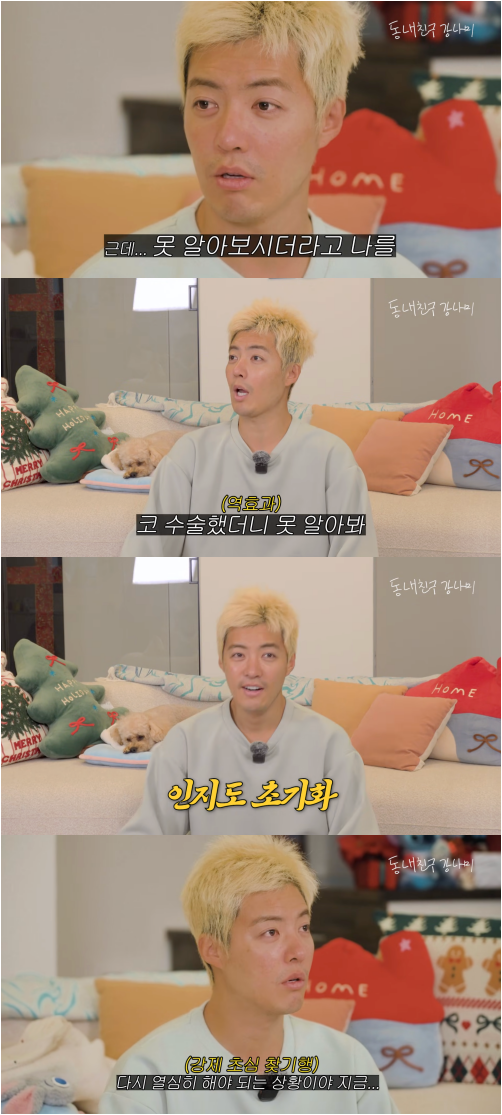 이어 코 성형으로 인한 예상치 못한 부작용도 공개했다. 강남은 “내가 이번에 한 달 간 해외 촬영을 하고 시골 촬영을 하고 왔다. ‘한일톱텐쇼’를 하면서 어르신들이 나를 알아보신다. 어르신들 사이에서 인기가 좋아서 시장에 가면 난리가 나는데 코수술을 했더니 이제 못 알아보시더라. 너무 아쉽다”며 “인지도를 새로 쌓아야 하니 열심히 해야 한다”고 덧붙였다. 이날 강남은 면도를 하지 않은 채 촬영에 나서며 “이 애매한 수염이 내 콤플렉스다. 염소처럼 난다. 이걸 고치기 위해 레이저 시술을 예약했었는데 ‘아플 거예요’라는 의사의 말에 바로 나왔다. 난 아픈 게 싫다. 면도만 해도 연예인처럼 된다”며 웃음을 자아냈다.