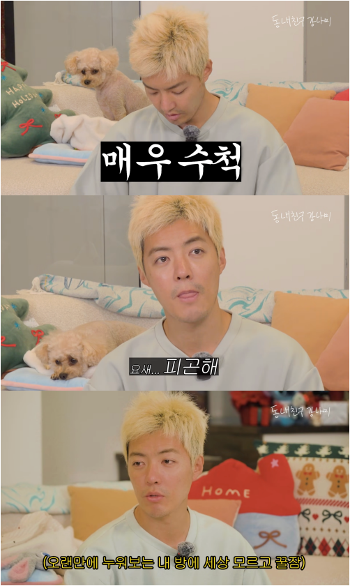 잠옷 차림으로 등장한 그는 다소 수척한 모습으로 “쉬고 싶다”며 “요새 피곤하다. 나 이번에 한 달 만에야 집에서 잠을 잤다”며 고충을 털어놨다.
