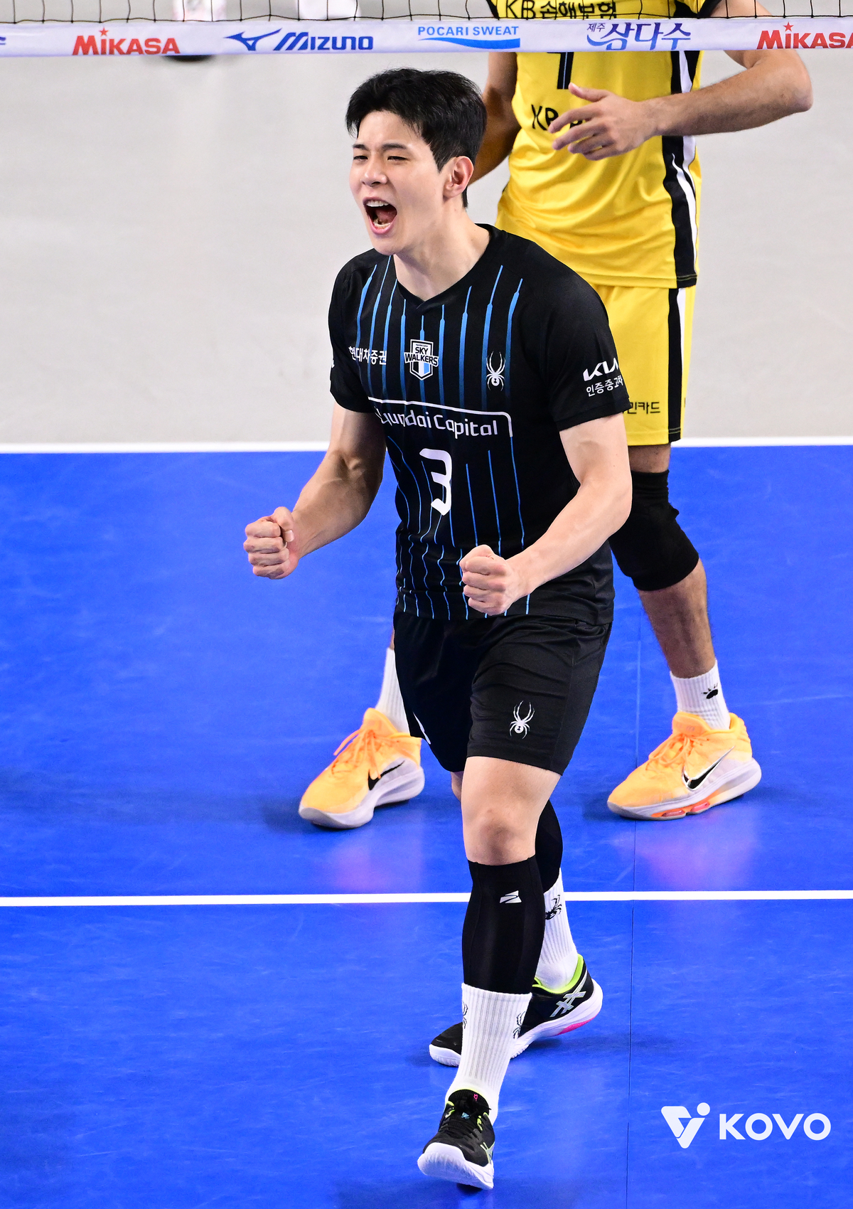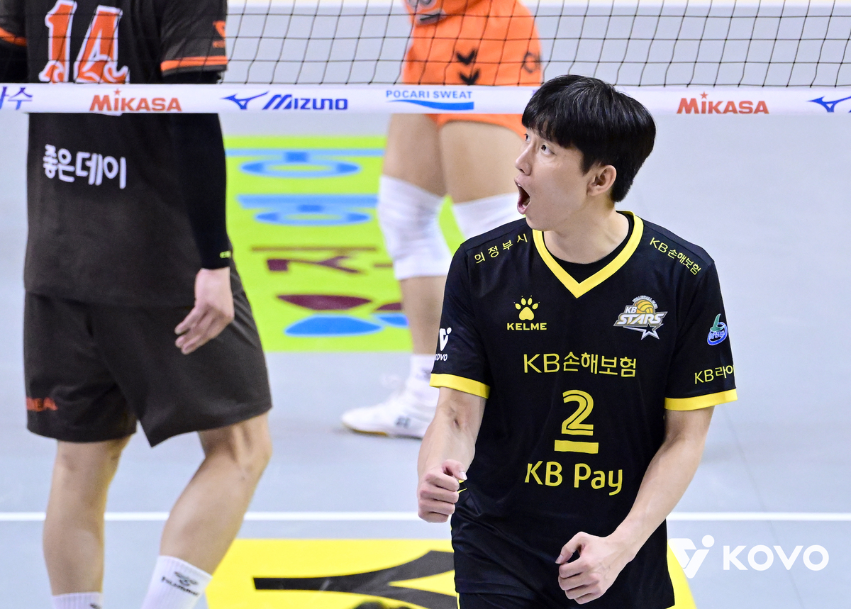 KB손해보험 세터 황택의가 팀 득점에 포효하고 있다. 사진=KOVO 제공