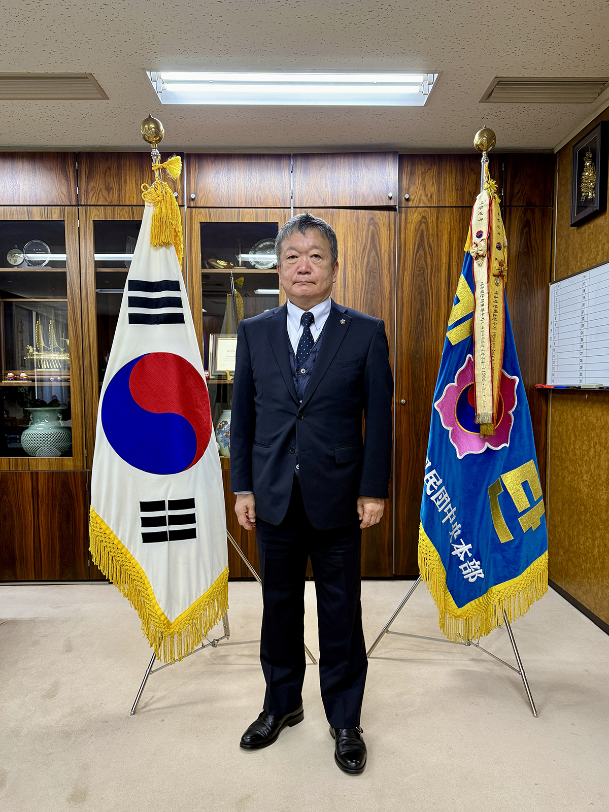 3년 임기 반환점을 돈 김이중 재일본대한민국민단 중앙단장이 지난 4일 도쿄 미나토구 사무실에서 한·일 수교 60주년을 마무리하는 소회와 내년 민단 창단 80주년을 맞이하는 포부를 밝힌 뒤 포즈를 취하고 있다. 김이중 재일본대한민국민단 중앙단장은 한·일 수교 60주년인 올해 누구보다 바쁜 하루하루를 보냈다. 60주년을 맞아 열린 여러 행사 참석 등을 위해 한 달에 두세 번씩 한국에 다녀오면서 “한·일 관계를 미래지향적으로 발전시키겠다는 양국의 의지를 확인할 수 있었다”고 말했다. 특히 지난 6월 주일 한국대사관이 도쿄에서 주최한 60주년 기념 리셉션에 이시바 시게루 당시 총리를 비롯해 일본의 전현직 총리가 4명이나 참석한 일은 그에게 ‘신선한 충격’으로 남아 있다. 43만 재일동포는 한·일 관계의 부침을 피부로 느끼는 이들이다. 일본 내 ‘한류 1번지’로 통하는 도쿄 신오쿠보나 외국인 노동자가 많이 사는 가나가와현 가와사키시는 불과 몇 년 전만 해도 혐한 시위로 얼룩지곤 했다. “조선인 죽어라”, “일본을 떠나라”고 외치는 우익의 혐오 발언에 몸서리치곤 했던 동포사회에겐 한·일 양국이 양호한 관계를 유지하면서 서로에 대한 이해를 깊게 해 나가는 지금이 더없이 소중하다.