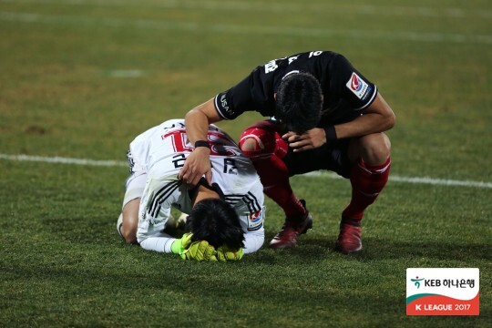 부산 아이파크 시절 골키퍼 김형근이 2017년 승강 PO에서 패하자 아쉬워 눈물을 흘리고 있다. 사진=한국프로축구연맹 제공 2016년 데뷔한 김형근은 K리그2 경험은 누구 못지 않다. 9시즌 동안 146경기를 소화했다. 올 시즌 개인 최다인 38경기에 출전했다. 경기당 1.29실점으로 실점율은 다소 높았으나 클린시트(무실점) 2위(13경기)로 이를 상쇄했다. 성남FC와의 PO와 이어 수원FC랑 치른 승강 PO 2경기를 무실점으로 막았다. 특히 승강 PO 1차전에서는 상대 유효 슈팅 10개를 막아내는 집중력을 펼쳤다.