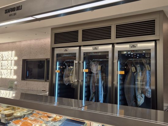 수산물 구역에는 선어 드라이에이징(건식 숙성) 과정을 시각화했다. 이는 비프 드라이에이징 기술을 선어에 적용한 것으로 신세계백화점은 3년마다 독일 뒤셀도르프에서 열리는 유통 매장 전시회 '유로샵'에서 해당 기술을 확인하고 국내 최초로 구현했다.
