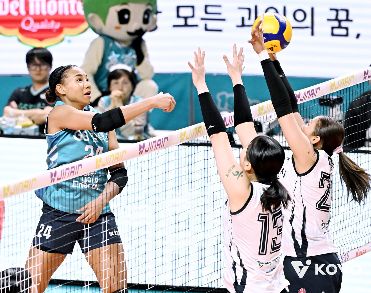 [장충=남정훈 기자] 여자 프로배구 IBK기업은행과 GS칼텍스의 2025~2026 V리그 3라운드 맞대결이 펼쳐진 10일 서울 장충체육관. 올 시즌 GS칼텍스의 1,2라운드를 한 단어로 정리하면 ‘퐁당퐁당’이었다. 1라운드 3승3패, 2라운드 3승3패로 경기마다 기복이 심했다. 지젤 실바(쿠바)에게 쏠린 지나친 공격 의존도에 따른 부작용이었다. 무엇보다 1라운드 초반 4경기에서 맹활약했던 아시아쿼터 외국인 선수 레이나 토코쿠(일본)가 무릎 부상으로 결장한 게 컸다. 일본에 건너가 치료를 받고 추가 진단을 받은 결과 전방십자인대 손상이 발견됐지만, 수술이 필요한 정도는 아니었다. 레이나는 최근 한국으로 다시 돌아와 선수단에 합류했다.