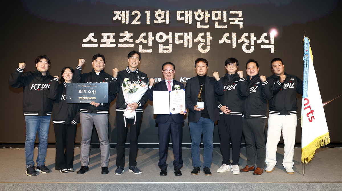 스포츠와 AI 기술을 접목한 스포츠융복합 분야에서 번뜩였다. 마법사들의 둥지인 수원 KT 위즈파크는 AI 스타디움 구축 및 운영을 통해 차별화된 관람 경험을 제공했다는 평가를 받고 있다. 안전 및 편의 강화를 통한 관람 저변 확대도 빼놓을 수 없다. 이 밖에도 국내·외 글로벌 인프라 확대 등 한국 프로스포츠 산업 활성화에 기여한 점을 높이 평가받았다.