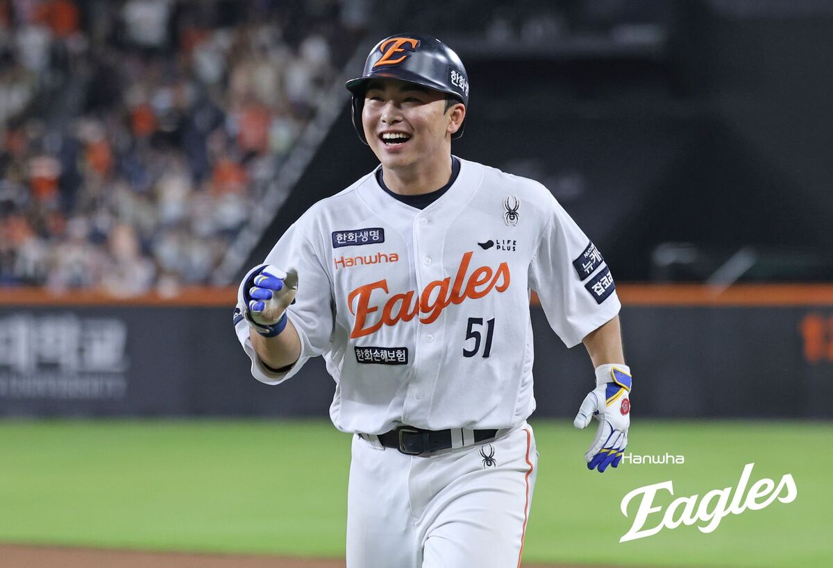 안타는 151개, 한화에선 압도적인 1위다, 2위 채은성(125개)과의 차이는 26개다. 이뿐만이 아니다. 리그 전체에서 희생플라이 으뜸(10개)을 써냈다. 스퀴즈 번트부터 시작해 떠오르는 결승타 장면도 부지기수, 숫자가 말해준다. 12번의 결승타점을 올려 노시환(14개)에 이어 팀 2위에 올랐다.