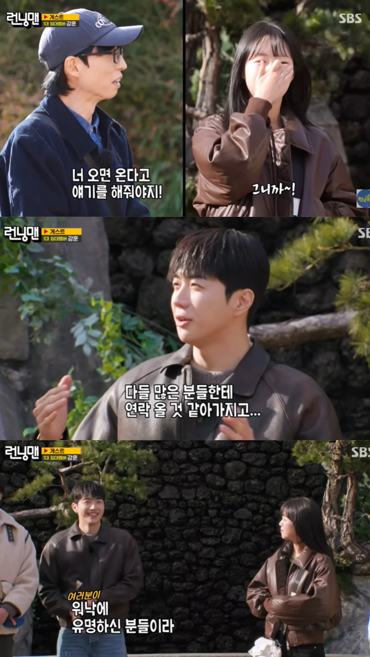 유재석은 “너 오면 온다고 얘기를 해줘야지!”, 양세찬은 “너 왜 연락도 안하냐 형들한테~!”라며 서운함을 표현했다. 그러자 강훈은 “많은 분들한테 연락 올 것 같아서...”라고 말끝을 흐렸다.
