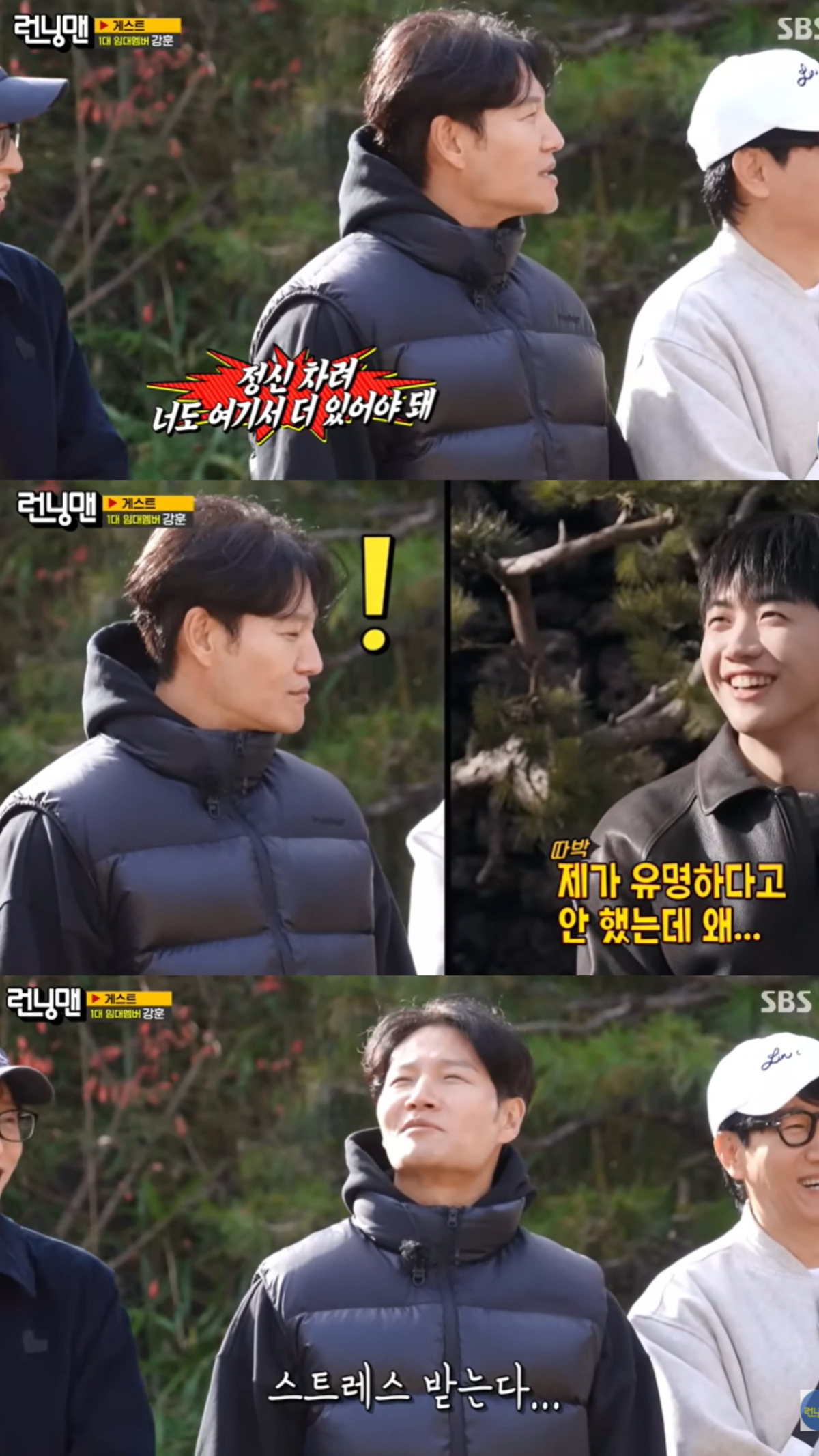 강훈의 말을 이해한 김종국은 머리를 넘기며 입을 닫았다. 하하가 “종국이 형도 할 말 없으니까”라며 조용해진 김종국을 묘사했고, 이어 김종국은 “스트레스 받는다”고 분노했다.
