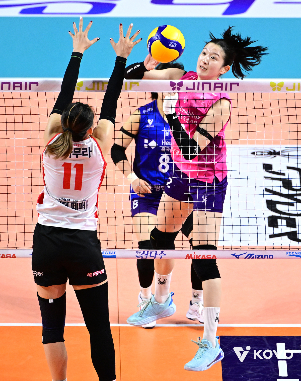 흥국생명은 20일 인천 삼산체육관에서 페퍼저축은행과의 2025~2026 진에어 2025~2026 V리그 여자부 홈 경기에서 세트스코어 3-1(25-22 14-25 25-20 25-21)로 승리했다. 2연승을 달린 흥국생명은 승점 23(8승8패)로 한 경기를 덜 치른 GS칼텍스를 한 계단 밀어내고 3위로 올라섰다.