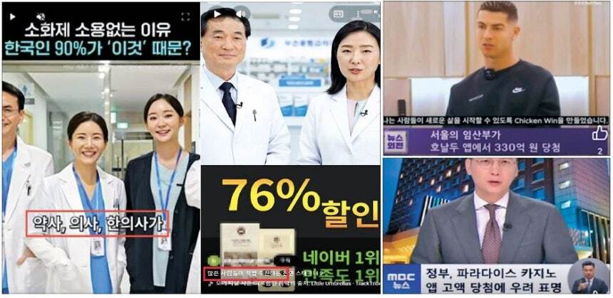 AI를 이용해 유명인이나 전문가를 사칭하거나, 언론사에서 제작한 영상처럼 조작해 만든 광고가 소셜미디어(SNS) 등을 중심으로 무분별하게 유통되고 있다. 방송미디어통신위원회 제공 ◆허위·과장 광고 단속 근본적으로 한계 허위·과장 광고 단속은 근본적으로 한계가 있다. 광고가 범람하는 데다 제재가 내려지면 광고업자들이 이를 피해서 더 교묘하게 광고하는 식으로 상황에 대응하기 때문이다.