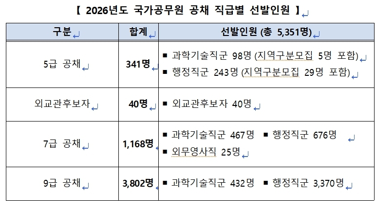 올해 국가공무원 공채 시험 선발 인원이 지난해보다 79명 증가한 5351명으로 확정됐다.
