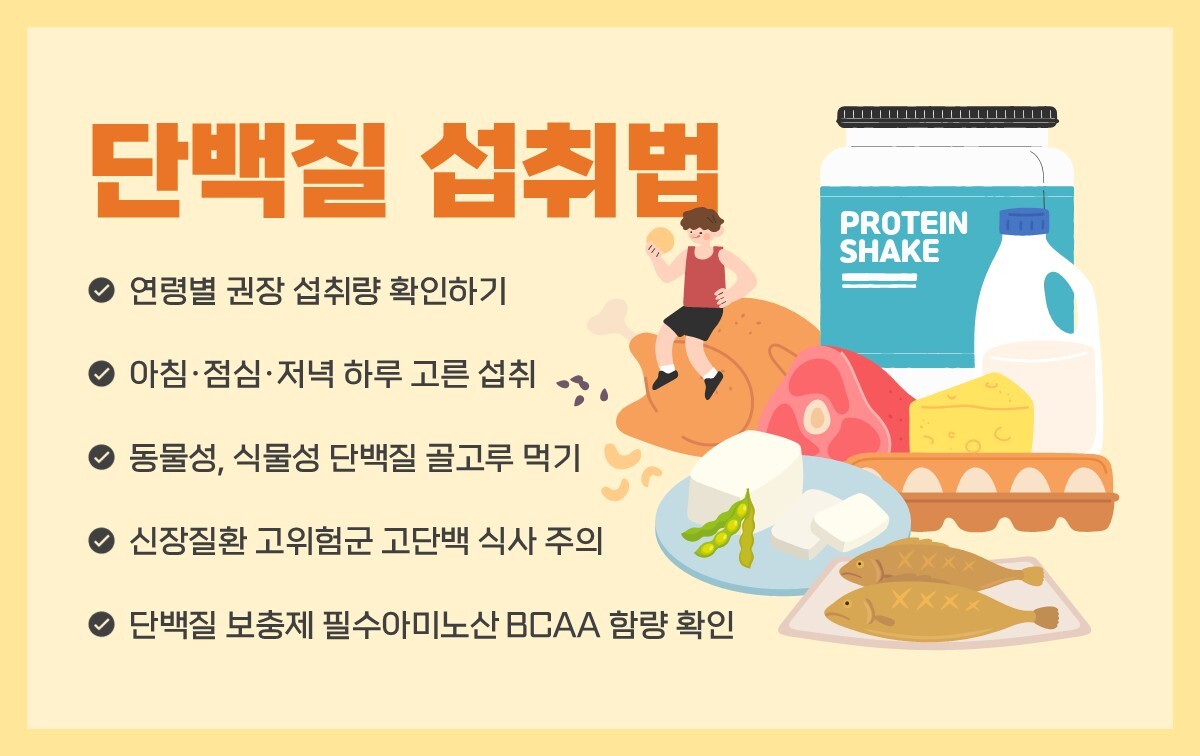 과다 섭취 신장에 부담, 결핍은 근육 감소 양보다 질과 분배 중요, 여러 공급원 조합