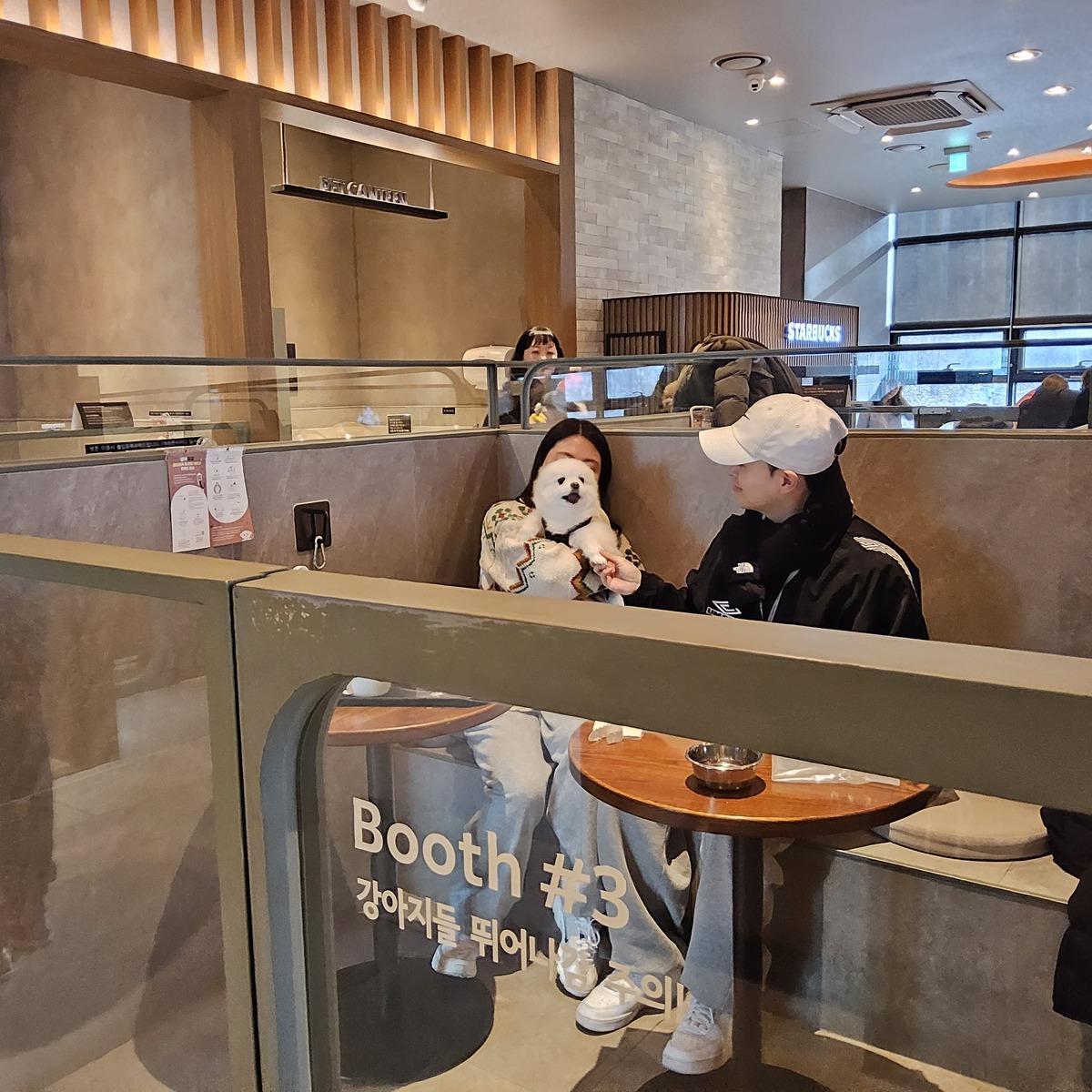 규제샌드박스를 통해 반려동물 동반 출입 및 취식이 가능한 시범사업 매장으로 운영 중인 스타벅스 구리갈매DT점에서 반려가족이 시간을 보내고 있다. 박재림 기자 덧붙여 식약처는 반려동물간의 충돌, 물림 사고 등에 대비한 반려동물 배상책임보험 가입을 권장했다. 영업자는 도사견·핏불테리어·로트와일러 등 동물보호법상 맹견의 음식점 출입을 제한할 수 있는데, 만약 출입이 가능토록 할 때는 책임보험 가입 여부를 확인할 방침이기 때문이다.