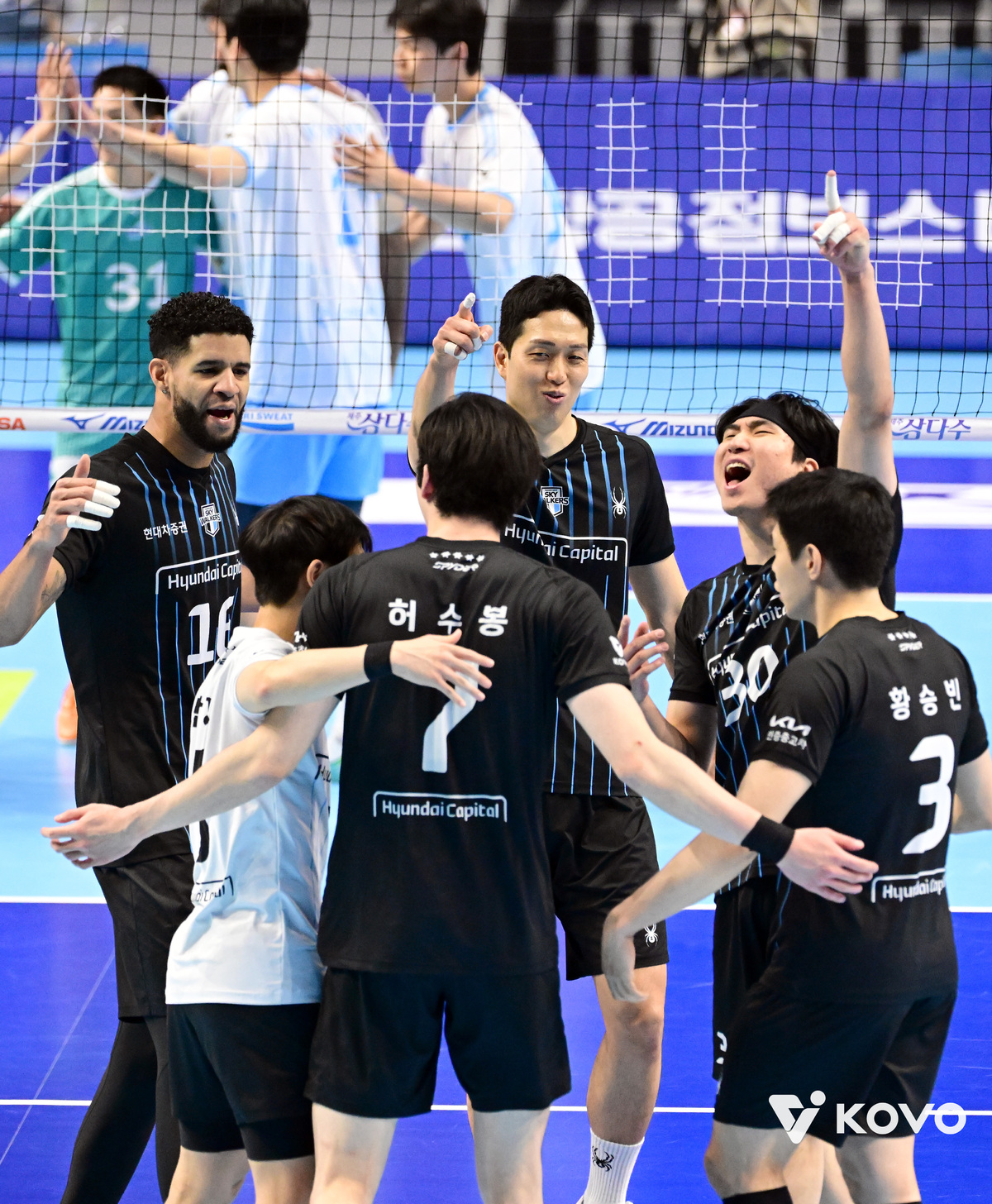 허수봉이 선봉에 섰다. 이날 서브 에이스만 4개를 터뜨리며 14득점을 몰아쳤다. 공격성공률도 66.67%에 달했다. 이어 신호진(14점)-바야르사이한(11점)-레오(11점)까지 총 4명의 선수가 두 자릿수 득점을 보태며 다채로운 공격 옵션을 자랑했다. 팀 블로킹에서도 9-2로 크게 앞서 높이에서도 상대를 짓눌렀다.