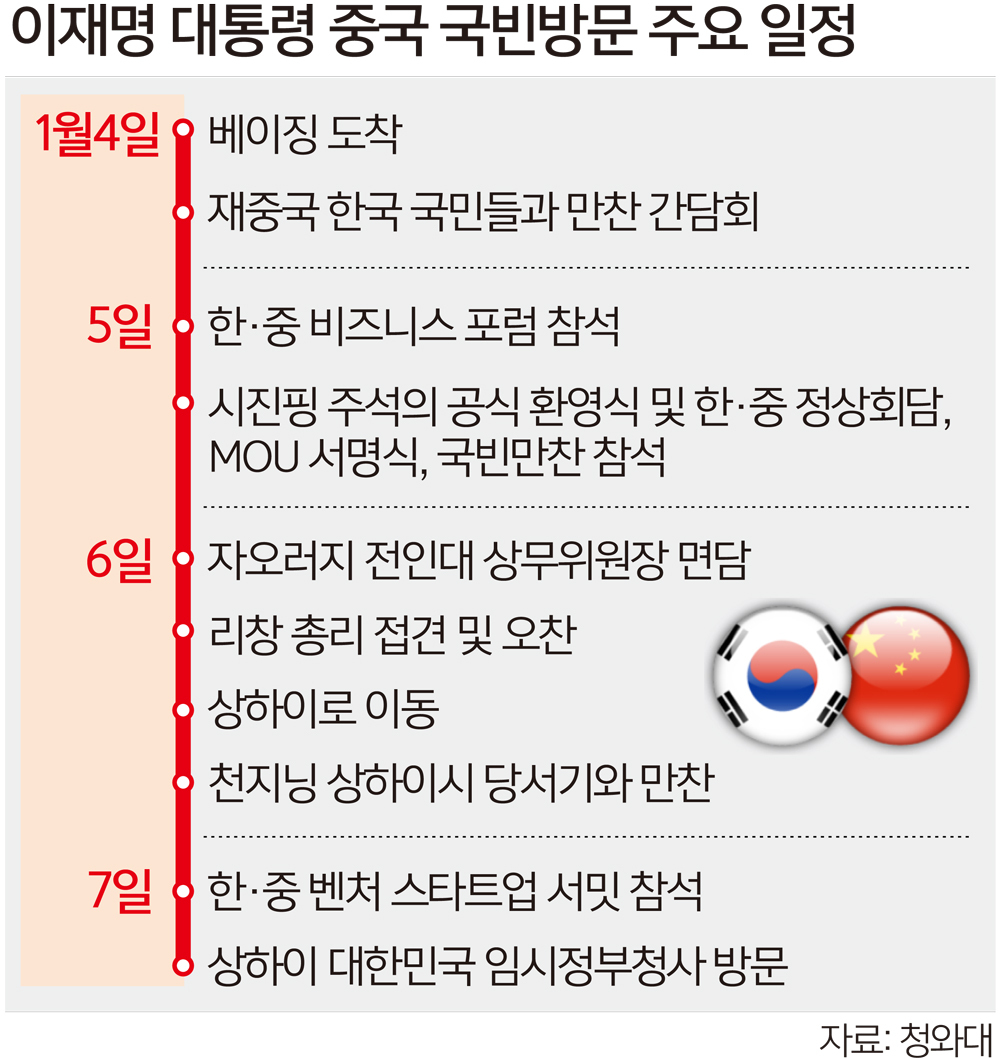 이재명 대통령과 시진핑 중국 국가주석의 5일 정상회담에서는 북한 문제, 경제와 안보 협력, 문화 분야에 이르기까지 폭넓은 의제를 논의할 것으로 예상된다. 지난해 11월 경주 아시아태평양경제협력체(APEC·에이펙) 정상회담을 계기로 이 대통령과 시 주석의 첫 정상회담이 이 대통령 취임 후 상견례 성격이 강했다면, 2개월 만에 열리는 이번 회담에서는 한·중 관계 전반에서 보다 깊이 있는 대화가 이뤄질 것으로 보인다.