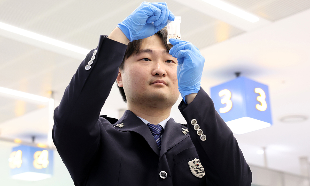 최준혁 인천공항세관 여행자통관과 주무관이 마약 의심물품에 대해 파괴검사를 하고 있다. 공기에 마약입자가 확산하는 것을 막기 위해 밀폐된 집중 검사장에서 검사가 진행된다. 5일 인천공항에 따르면 인천공항세관은 해외여행자들을 통해 인천국제공항에 반입되는 마약류와 불법물품 밀반입 단속을 위해 기탁화물 전량에 X-Ray 판독, 마약탐지견 탐지, 첨단 장비를 이용한 정밀검사를 실시하고 있다.