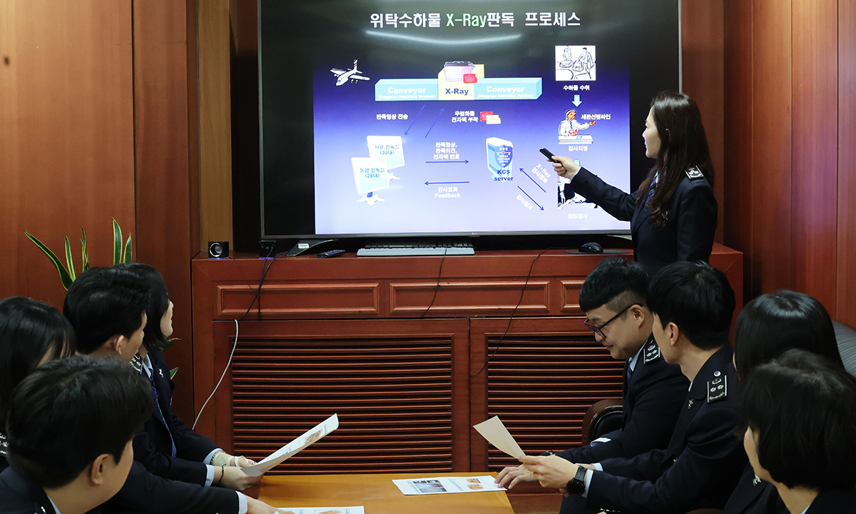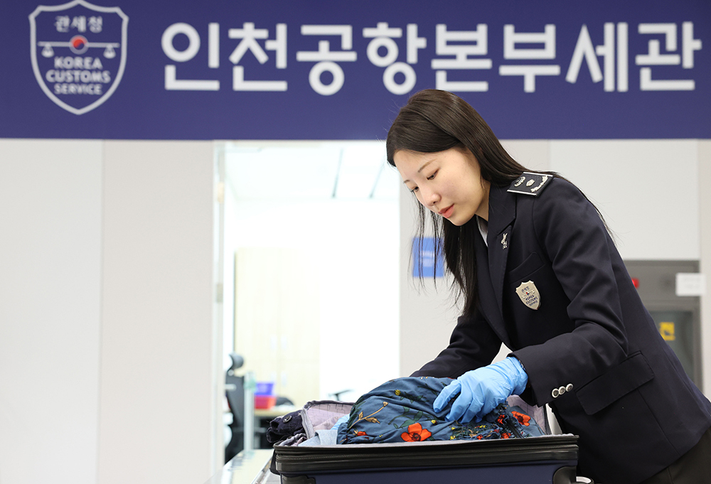 X-Ray 판독팀 직원들이 마약 적발 사례를 공유하고 판독 기법을 논의하는 회의를 하고 있다. 김대구 인천공항세관 여행자통관검사과 주무관이 마약류 여부를 확인하기 위해 마약키트검사를 하고 있다. 서이주 인천공항세관 여행자통관검사과 주무관이 검사로 지정된 여행자 휴대품을 살펴보고 있다. 여행자휴대폰 검사의 경우 우범정보 분석과 X-Ray 판독, 탐지견 탐지 등을 통해 선별되는 검사자를 정밀 검사한다. 특히 마약 밀반입 단속을 위해 키트, 이온 스캐너 등을 이용해 단속하고 있으며 필요시 파괴검사도 진행한다. 또한 밀리미터파 검색기를 이용하여 보디패킹을 이용한 불법물품 밀반입을 차단하고 있다.