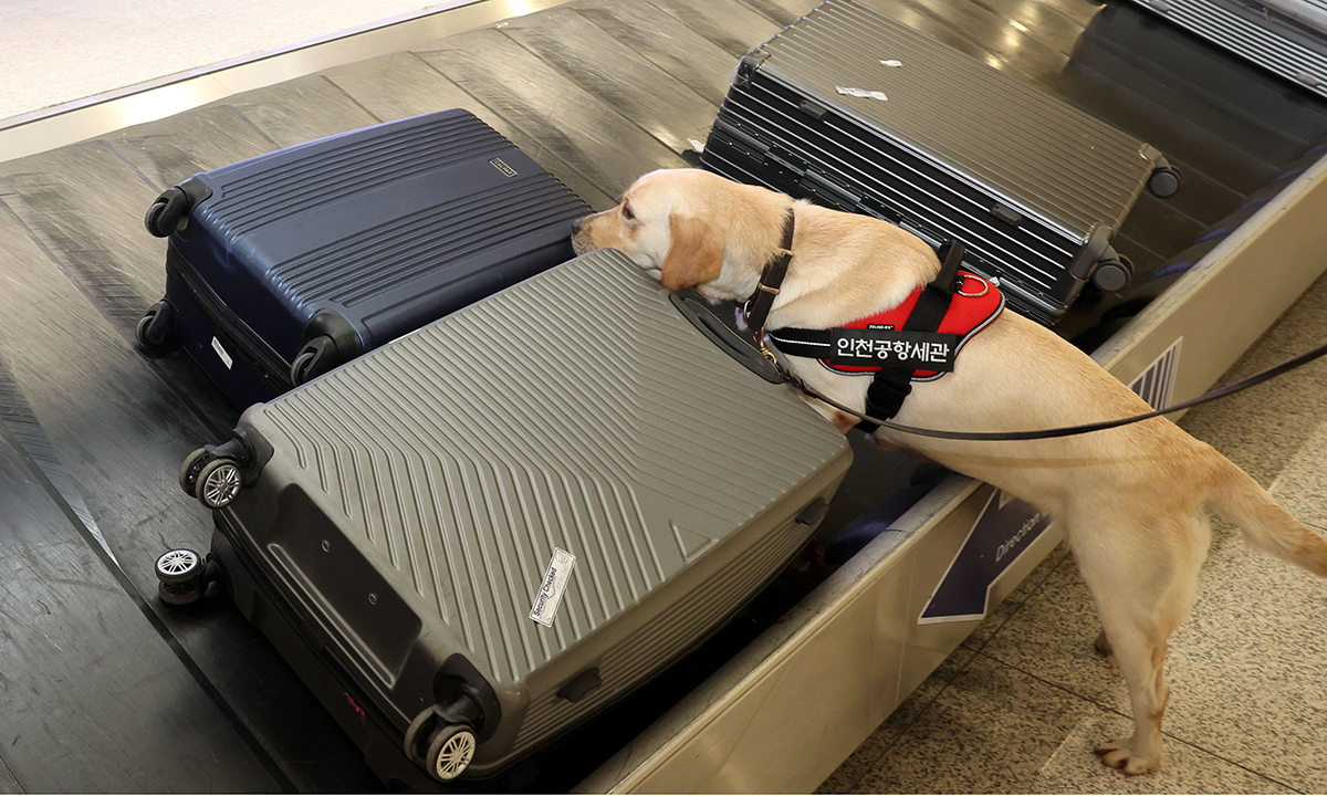 탐지견도 초집중… “킁킁 내 코는 못 속여” 탐지견 루리(리트리버, 3살)가 핸들러 서혜민 주무관과 함께 제1터미널 입국장에서 수하물 탐지를 하고 있다. 의심 가방엔 ‘노란 자물쇠’ 철컥 몸 속에 꽁꽁 숨겨도 ‘딱’ 걸립니다 인천공항세관 직원이 밀리미터파 탐색기를 이용해 보디패킹으로 반입된 마약 의심물질 검사 시연을 하고 있다. 휴대품 여행자 X-Ray 판독팀 직원들은 인천공항세관에 140여명이 근무하고 있으며, 평균 업무량은 24시간 기준 1인당 약 25편의 항공기와 약 2800여건의 수하물을 판독하고 있다. 코로나19 팬데믹(세계적 대유행)이 끝나고 ‘K컬처’ 돌풍이 더해 지속적인 여행자 증가와 인천국제공항 규모 확장으로 수하물의 판독량도 늘어 가고 있다. 판독팀 직원들은 24시간 항공기가 입항하는 인천국제공항의 특성상 상시 긴장을 유지하며 한정된 시간에 부족한 인력으로 X-ray 판독 업무를 수행하고 있다. 마약, 대테러 물품 등 불법물품의 국내 반입을 차단해야 한다는 무거운 책임감을 갖고 임무를 수행하고 있다.