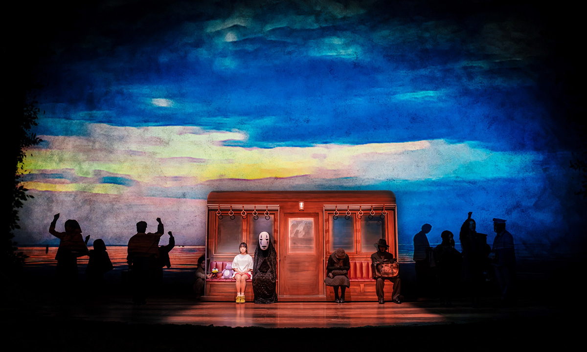 “애니메이션을 그대로 무대 위로 옮겼구나”였던 극 초반 감상은 후반부에 이르러선 ‘원작, 그 이상의 감동’으로 증폭된다. 치히로가 가오나시와 나란히 전차에 앉아 유바바 언니를 찾아가는 저녁 풍경이 대표적이다. 물과 하늘의 경계가 흐려진 풍경, 정차역의 적막, 그림자 같은 존재들. 초현실적인 풍경이면서도 익숙한 ‘쉼’의 정서가 깔린다. 온갖 유혹으로 환심을 사려 했던 가오나시를, 최소한의 친절과 절제로 진정시키는 치히로의 변화도 그 고요 속에서 더 선명해진다.