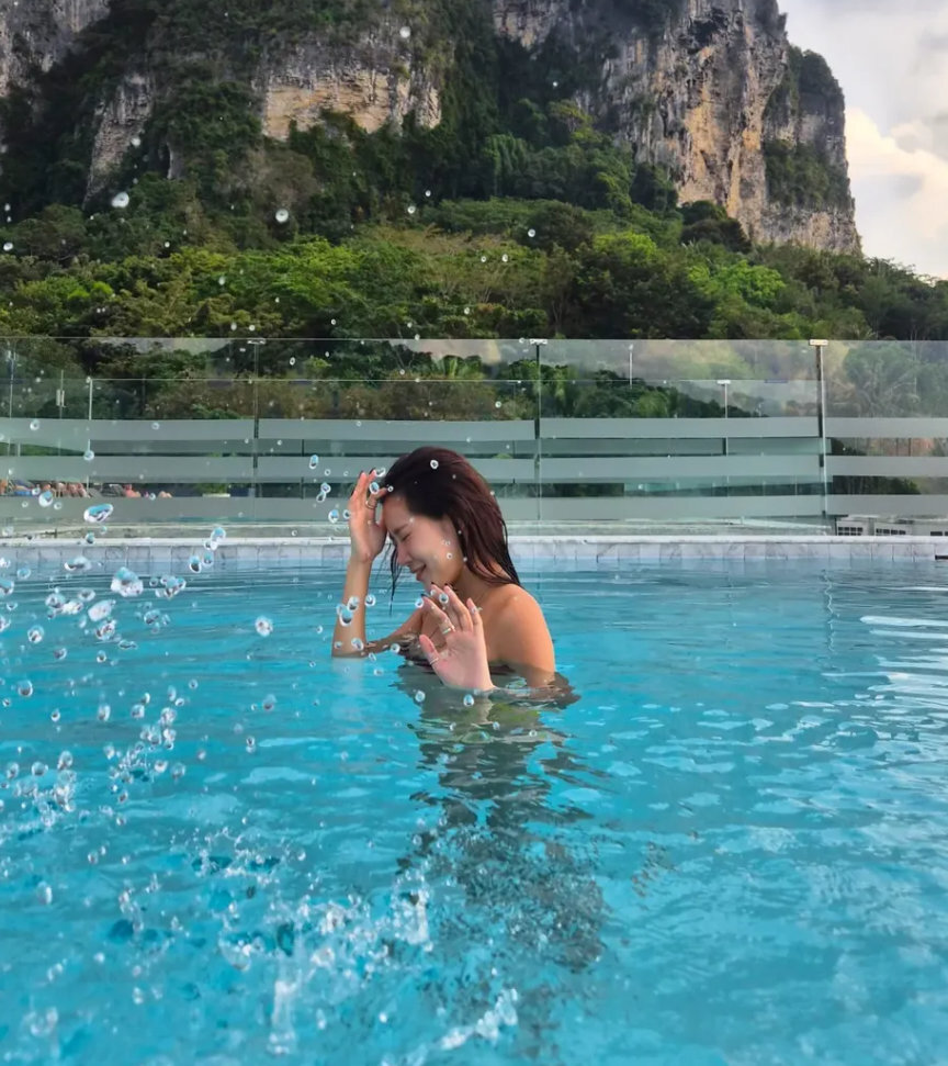 사진 = 소유 SNS 계정 공개된 사진 속 소유는 태국 끄라비의 해변과 수영장에서 여유로운 시간을 보내고 있다. 모래사장에 앉아 바다를 바라보거나 물놀이를 즐기는 모습이 자연스럽게 담겼다. 최근 10kg 감량에 성공한 소유는 군살 없는 S라인과 완벽한 비율로 팬들의 시선을 사로잡았다. 모자와 선글라스, 비치웨어를 매치한 캐주얼한 휴양지 패션 속에서도 탄탄한 몸매와 건강미가 돋보인다.