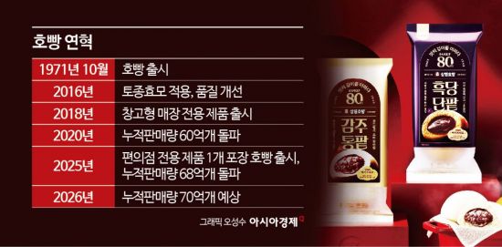 국내 인구 기준으로 환산하면 국민 한 사람이 매년 겨울 평균 2~3개씩 호빵을 먹어온 셈이다. 올해 누적 판매량은 70억개를 넘어설 것으로 예상된다. 단일 제품이 50년 넘게 판매되며 이 같은 기록을 세운 사례는 식음료업계에서도 드물다.