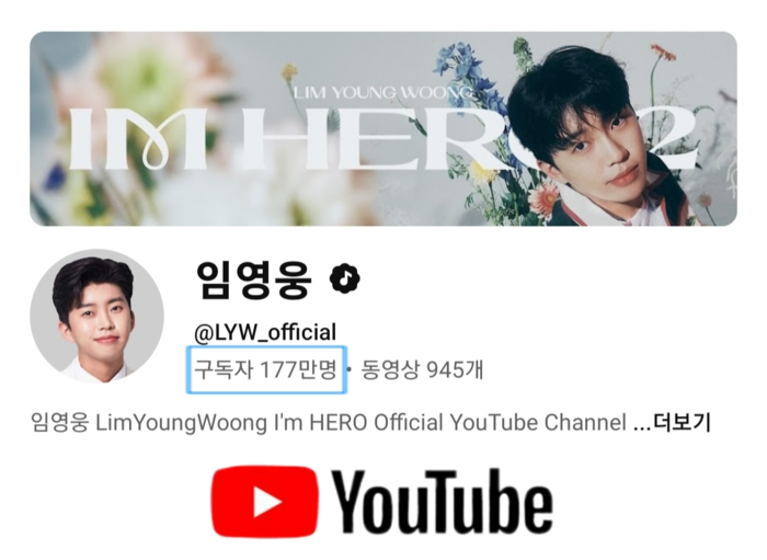 임영웅 공식 유튜브 채널 임영웅은 1월 18일 기준 구독자 177만 명을 달성했다.