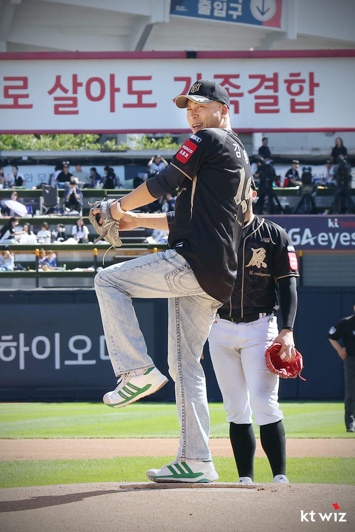 이날 유사나 회원 및 가족 1000여명도 위즈파크를 찾아 경기를 관람했다. 유사나 회원 가족 어린이들은 경기 전 애국가 제창을, 김충훈 유사나 아시아 수석 부사장은 승리 기원 시구로 이날 행사에 의미를 더했다.