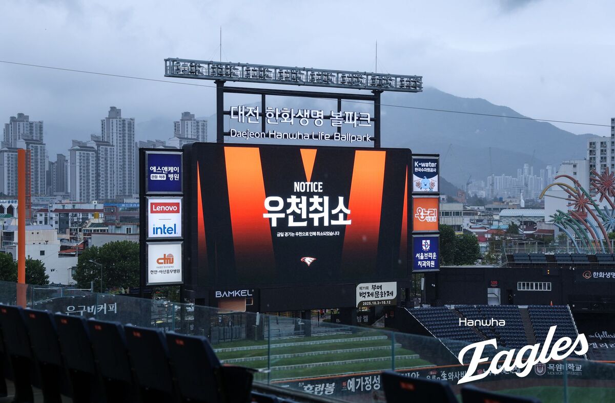 한국야구위원회(KBO)는 28일 대전한화생명볼파크에서 열릴 예정이던 LG와 한화의 2025 신한 SOL뱅크 KBO리그 최종 16차전 맞대결이 우천취소 됐다고 밝혔다.