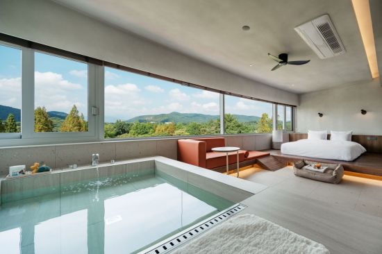 시설 면에서 가장 눈에 띄는 것은 객실이다. 우선 반려동물의 눈높이에 맞춘 낮은 설계는 객실에서도 그대로 이어졌다. 펫 계단과 미끄럼 방지 효과가 있는 친환경 기능성 시트를 바닥재로 적용해 침대와 소파 등 객실 내 모든 시설을 반려동물이 자유롭게 오갈 수 있게 구성됐다. 넓게 빠진 대형 창에는 반려동물이 바깥 풍경을 볼 수 있도록 윈도우 시트가 설치돼 있고, 냄새를 최소화하기 위해 일반 호텔에서 보기 어려운 우드 블라인드가 설치돼 있었다.