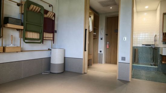 화장실도 사람과 반려동물 시설이 따로 마련돼 있다. 손정규 키녹 부총지배인은 "화장실 내 반려동물 세족과 샤워가 가능한 펫 욕실과 곳곳에 반려동물 리드 줄을 잠시 걸어둘 수 있는 고리를 마련했고, 배관도 털이 빠져도 막히지 않도록 기존 대비 2~3배가량 큰 대구경으로 교체하는 등 반려동물 동반 고객이 불편함 없이 이용할 수 있도록 챙겼다"며 "최초 설계부터 반려견을 중심에 두고 시스템을 구축했다"고 자부심을 드러냈다. 상대적으로 눈에 띄지 않는 세심함도 돋보였다. 강아지의 예민한 청각을 고려해 초인종 대신해 초인등을 사용했고, 객실 내 전 구역 플리커 프리(Flicker Free) 조명을 설치해 반려동물의 시력을 배려했다. 이밖에 반려동물용 타월과 침대커버, 식기, 간식, 배변커버, 탈취제 등 어메니티도 따로 구비된 모습이다.