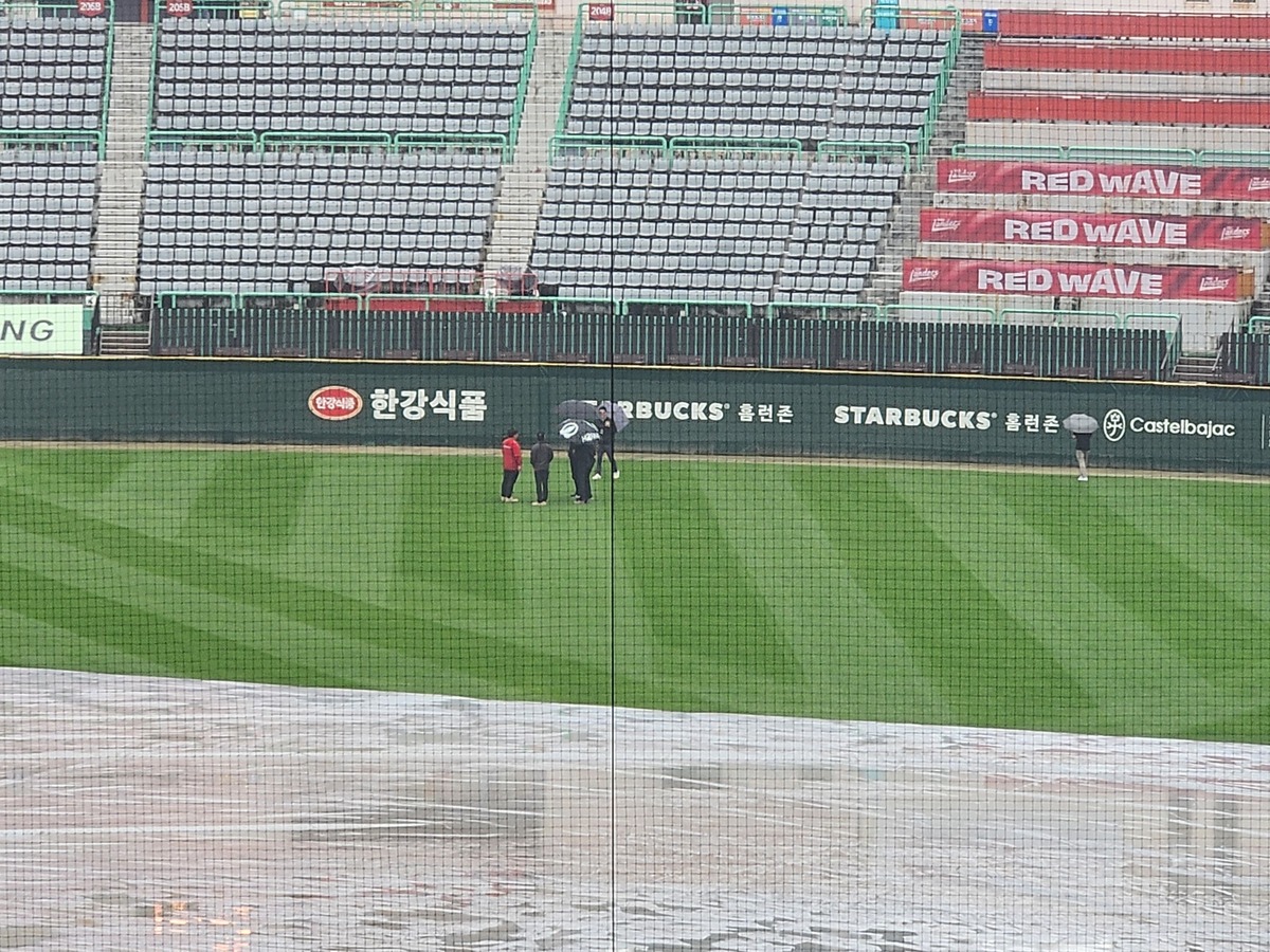 더 큰 문제는 앞으로 내릴 비다. 예보상 오후 6시부터 시간당 4.1㎜가량 강수량이 예고된 상황이다. 경기 도중 지연될 여지도 충분하다는 뜻이다. 앞서 6, 7일 대구 삼성 라이온즈파크에서 열린 삼성과 5위 NC의 WC에서도 우천 변수가 있었다.