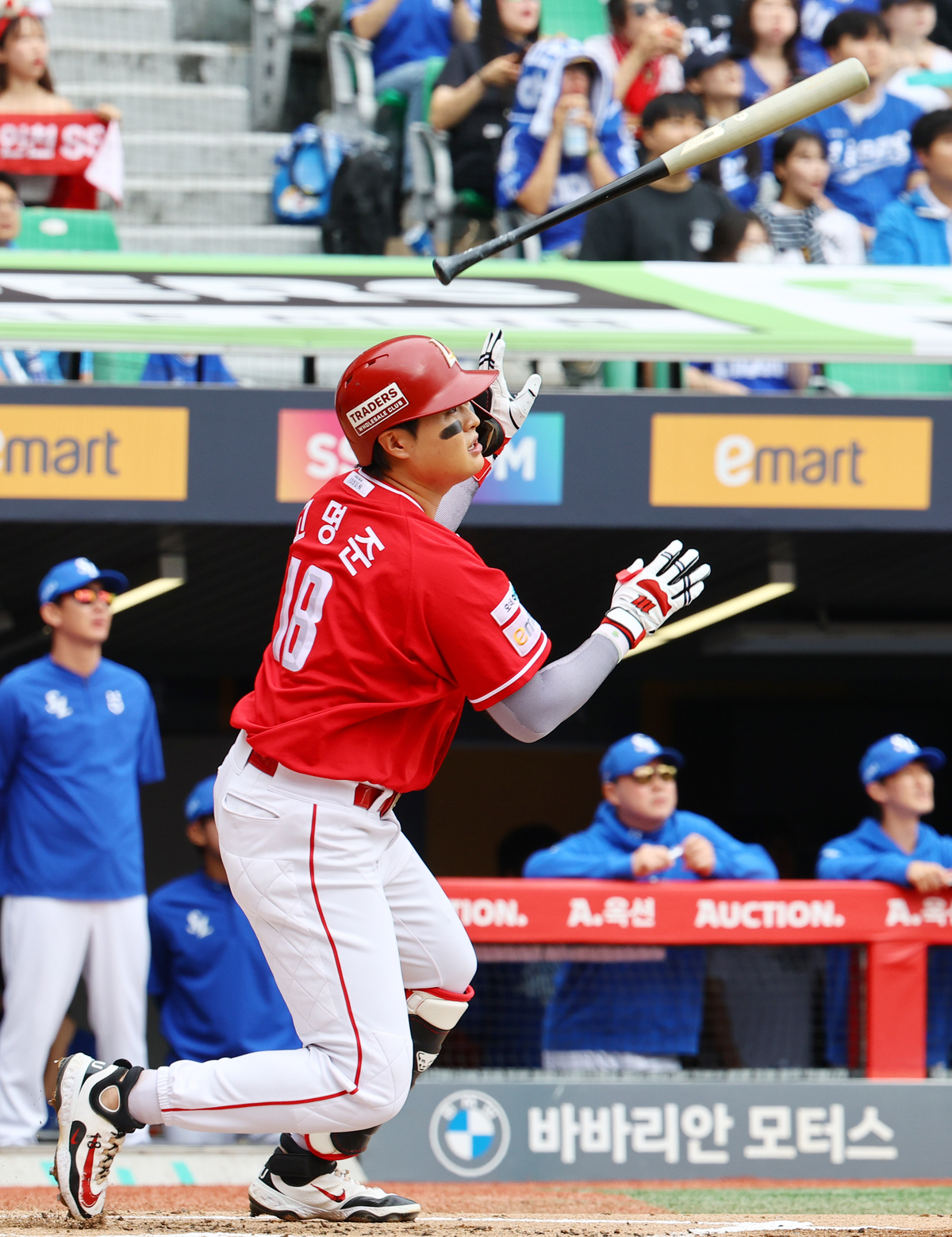 1-5의 열세를 3-5로 바꾸는 한방이었다. 패색이 짙던 팀의 정규이닝 마지막 공격, 무사 1루에서 상대 불펜 배찬승을 마주했다. 대타 류효승이 상대 2루수 뜬공 포구 실책으로 출루하며 만들어진 묘한 분위기를 그대로 점수로 치환했다. 볼카운트 1B에서 배찬승의 2구째 시속 147㎞ 패스트볼을 공략했다. 고명준의 스윙에 제대로 걸린 타구는 그대로 라이온즈파크 왼쪽 담장을 허무는 비거리 131m 홈런이 됐다.